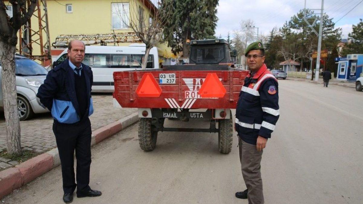Afyonkarahisar’ın İhsaniye ilçesinde trafik güvenliğinin arttırılması amacı ile traktör römorklarına reflektör takılmaya başlandı.İhsaniye Belediye tarafından başlatılan çalışma ile jandarma ekipleri gözetiminde traktör römorklarına reflektör takılmaya başlandı. Ücretsiz yapılan uygulamada reflektörleri zabıta ekipleri taktı. Trafik güvenliği için yapılan çalışama dolayısı ile vatandaşlar yetkililere teşekkür ettiler.Diğer yandan, toplamda 150 çift reflektör takıldığı kaydedildi.