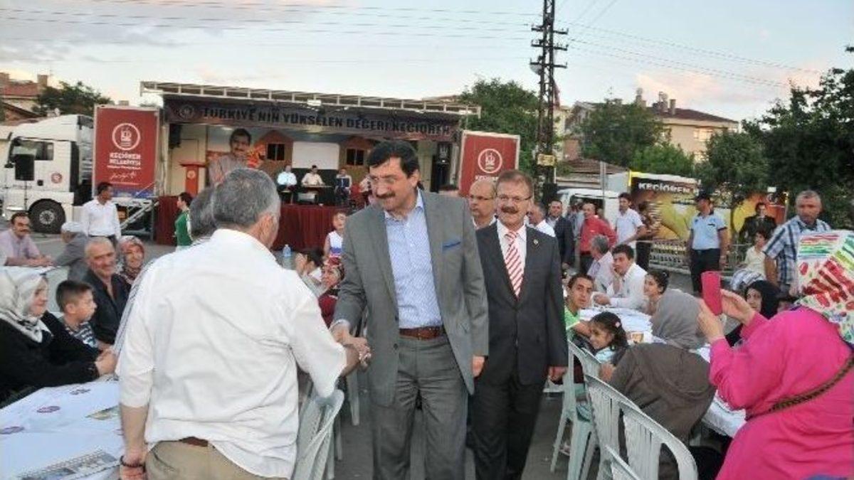 Keçiören Belediyesi’nin iftar sofrası bu defa iki mahalleyi bir araya getirdi.Şevkat ve Kamil Ocak Mahallelerini buluşturan iftar programına Keçiören Belediye Başkanı Mustafa Ak, eşi Hatice Ak ve çocukları ile birlikte katıldı. Şevkat Kamil Ocak pazar yerinde düzenlenen “Mahallede İftar Var” programı Kur’an tilaveti ve Bezm-i Safa grubunun ilahi konseri ile başladı. Yemeğin ardından mahalle sakinlerine hitap eden Mustafa Ak, komşuların ve arkadaşların birlik ve beraberlik içerisinde aynı sofra etrafında buluşmasının özlenen bir manzara olduğunu söyledi. Aynı sokağı, mahalleyi, belki de apartmanı paylaşan insanları bir araya getirdiklerini belirten Başkan Ak, “Belki birbirinizi tanımıyorsunuz, şimdiye kadar aynı sofrada yemek yemediniz. Bugün oturduğunuz bu iftar sofrasında etrafınızda gördüğünüz insanlara selam verin, tanışın. Bu bizim huzurumuzu, birlik ve beraberliğimizi artırır. Şevkat Mahallesi benim ilk göz ağrım. İlk oturduğum mahalle. Keçiören’den taşınanlar Keçiören’deki arkadaşlığı, komşuluğu özlüyoruz diyorlar. Gerçekten de Keçiören özlenecek bir yer, çünkü Keçiören huzur yeridir” diye konuştu.10 Ağustos’ta halkın milletvekillerinin aracılığı olmadan doğrudan Cumhurbaşkanını seçeceklerini hatırlatan Mustafa Ak şu mesajları verdi:“Biz Recep Tayyip Erdoğan’ın ekibindeniz. AK Parti’nin Cumhurbaşkanı adayı Recep Tayyip Erdoğan’dır. Genel Başkanımız bugüne kadar hep bizler için oy istedi, şimdi biz onun için oy istiyoruz. 11 yıldır aralıksız Başbakanlık yaparak milletinin gönlünde yer buldu. O sizlerin adayıdır. Sizlere güveniyoruz. İlk turda Cumhurbaşkanlığı seçimini kazanacağına inanıyoruz.”Başkan Ak’ın konuşmasının ardından iftar programı Hacivat-Karagöz gösterisi ile devam etti.
