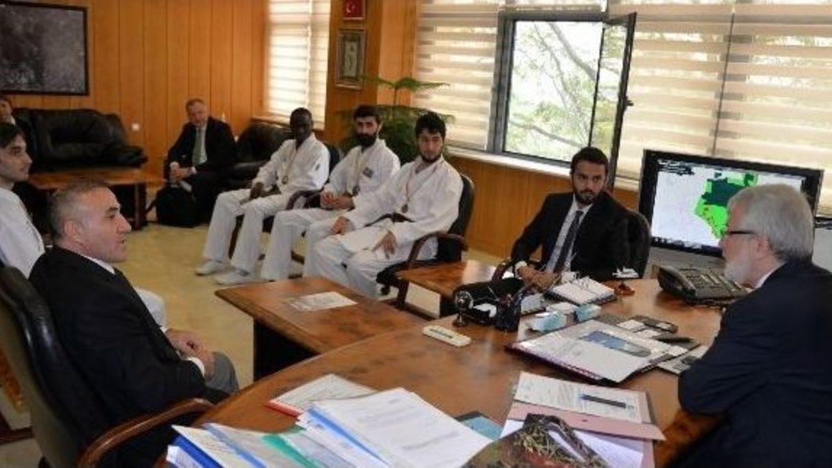 İlahiyat Fakültesi Gençlik ve Spor Kulübü karate öğrencileri, Uludağ Üniversitesi (UÜ) Rektörü Yusuf Ulcay’ı makamında ziyaret etti.UÜ Rektörü Prof. Dr. Yusuf Ulcay, nisan ayında Antalya’da düzenlenen Uluslararası Avrasya BudokaidoKyokushin Turnuvası’nda çeşitli dereceler elde eden ve madalya kazanan UÜ İlahiyat Fakültesi öğrencileri ve Kulüp Başkanı Kemal Sevmez’i kabul etti. Ziyarette Kulüp Başkanı Kemal Sevmez, Rus Murat Chomaev, Fildişi Sahilli İsmael Nibaha Kone, Togolu TraoreTaoufic Kassa, Azeri İsmat Bayramlı ve Türk Abdulsamet Akça isimli karate takımı sporcuları hazır bulundu.Öğrencilerini kazandıkları başarılardan dolayı tebrik eden Rektör Ulcay, gerek ferdî, gerekse takım olarak alınan başarıların artarak devam etmesi temennisinde bulundu. Kulüp yöneticilerine ve antrenörlere de başarıdan dolayı teşekkür eden Ulcay, üniversite olarak madalya alan her öğrenciye birer teşekkür belgesi takdim edeceklerini açıkladı.Yakın bir zamanda temelini atacakları yeni spor bilimleri fakültesi binası ile Uludağ Üniversitesi’nin çok daha başarılı sporcular yetiştireceğini vurgulayan Ulcay, “Gerek kulüp, gerekse profesyonel anlamda her zaman öğrencilerimizin yanında olacağız. Yeter ki öğrencilerimiz spor yapsın, sportif faaliyetlerin içerisinde olsun. Ben de lisanslı sporcuyum. Dağcılık ve treaking yapıyorum. Spor her yaşta fayda sağlıyor. Ancak öğrencilik zamanlarında eğitimin yanında derslerin stresinden uzaklaşmak için yapılan spor çok daha faydalı oluyor. Öğrencinin boş zamanlarını zararlı alışkanlıklar ile doldurmasının önüne geçiyor” şeklinde konuştu.
