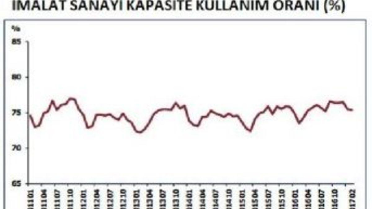 İmalat sanayi genelinde mevsimsel etkilerden arındırılmış kapasite kullanım oranı bir önceki aya göre 0.3 puan artarak yüzde 74.6 seviyesinde gerçekleşti.