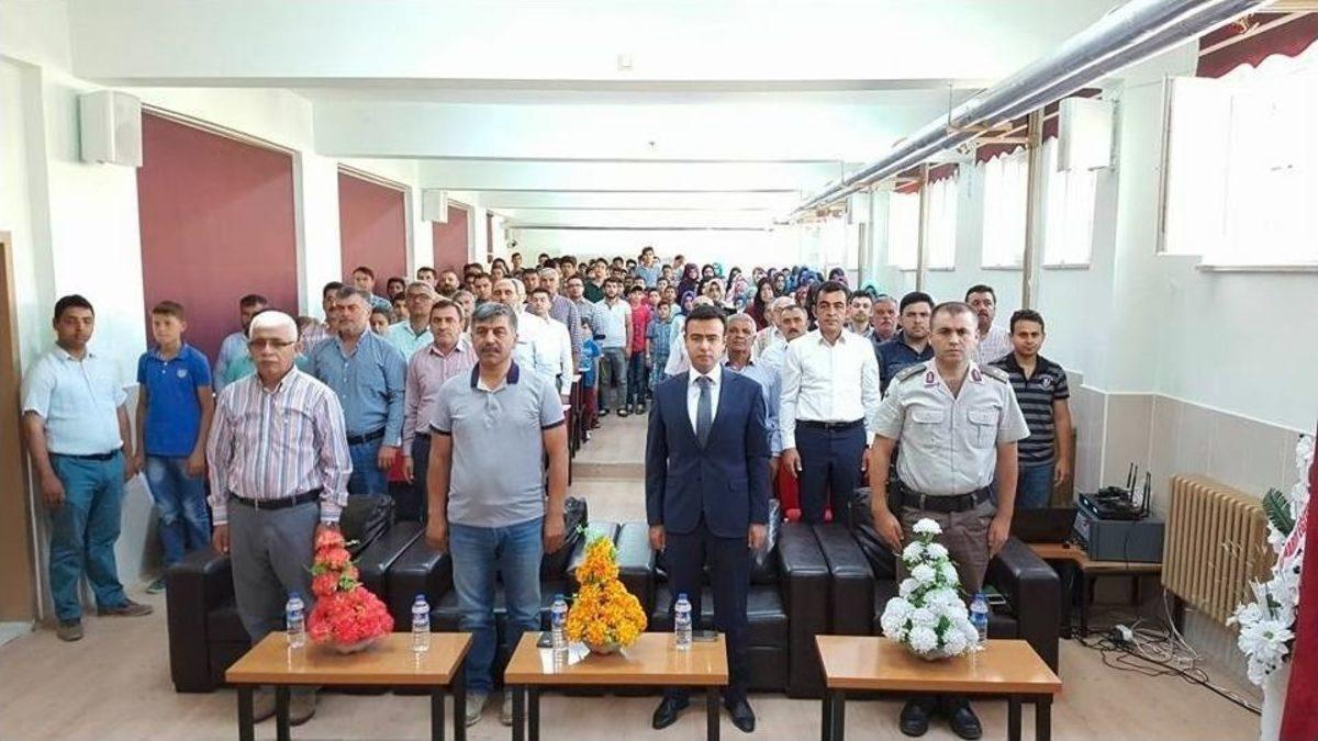 Çamardı’da 15 Temmuz Şehitleri Anma, Milli Birlik ve Demokrasi Günü töreni düzenlendi.Çamardı Şehit Muttalip Soylu Anadolu İmam Hatip Lisesi Ömer Halisdemir Konferans salonu’nda düzenlenen törene Çamardı Kaymakamı Batuhan Bingöl, Çamardı Belediye Başkanı Yavuz Soylu, Çamardı Garnizon Komutanı Çelebi Bağcı, AK Parti İlçe Başkanı Yasin Yılmaz, 15 Temmuz Şehidi Ramazan Konuş’un kardeşi Nazmi Konuş, Şehit Muttalip Soylu’nun babası Suat Soylu, Kurum Müdürleri, Muhtarlar, Öğretmenler, Öğrenciler ve İlçe Halkı katıldı.Tören öncesinde misafirler 15 Temmuz Sokağı’nı gezdi. Aziz şehitlerimiz için saygı duruşu yapıldı ve İstiklal Marşı okundu. Kur’an-ı Kerim Tilaveti ile başlayan törenin açılış konuşmasını Çamardı Şehit Muttalip Soylu Anadolu İmam Hatip Lisesi Müdürü Abdulgani Özkan yaptı. Özkan, 15 Temmuz Destanı’nın millet ve ümmet için önemini, o gün yapılan kahramanlık ve fedakarlıkları anlattı. “O gün, ölümü öldüren yiğitleri, “Sana ağuşunu açmış, duruyor Peygamber” nidasına koşan yiğitleri, Ömer’leri, Ramazan’ları, Zeynep’leri tarih yazacak, ancak bu milleti silahıyla vuranları, hainleri, satılmış köpekleri unutmayacak. “Markete erzak almaya değil, Köprüye Vatan kurtarmaya gidiyorum” diyenleri tarih yazacak, ancak ATM sırasına geçenleri, erzak depolayanları da bu millet unutmayacak. Selalarla, ezanlarla bu milleti uyandıran ve meydanlara davet eden Diyanet camiasını tarih yazacak, ancak “bu imamlar alınlarından vurulup minarelerden indirilmeli” diyen hainler unutulmayacak.” dedi. “15 Temmuz Destanı’nın yıldönümünde ölümden korkmayan, ölümü korkutan bu yiğitleri, ölümle korkutmaya çalışan bu hainler, dünyanın dört bir yanından işbirlikçi tutarak, içimizden hainleri yetiştirerek, bizim Vatanımıza, Bayrağımıza, Dinimize kasteden hainler bilmelidirler ki, bizim Nene Hatun’larımız, Alparslan’larımız, Fatih’lerimiz bitmedi. 15 Temmuz Kahramanları rahmetle anıyor, gazilerimize acil şifalar diliyorum. Bu günde, Vatanımıza, Devletimize, Dinimize kast eden hain terör örgütü ve işbirlikçilerini unutmadık, unutmayacağız, unutturmayacağız.” diyerek, başta Kaymakam Batuhan Bingöl, Belediye Başkanı Yavuz Soylu ve Garnizon Komutanı Çelebi Bağcı olmak üzere, katılımcılara teşekkür etti.Öğrencilerin şiir okuması ve 15 Temmuz ile ilgili izletti sunumundan sonra, kürsüye 15 Temmuz Şehidi Ramazan Konuş’un kardeşi Nazmi Konuş çıktı. Konuş, ağabeyinin ve kendisinin İmam Hatip mezunu olduğunu, ağabeyinin nasıl bir kişiliğe ve vatanseverliğe sahip olduğunu anlattı. 15 Temmuz gecesi ağabeyinin sanki şehitliğe doğru gittiğini hissettiğini aktaran Konuş, “Ağabeyim o gün iki defa gusül abdesti almış. Diğer 15 Temmuz Şehitlerinin aileleri ile görüştüğümde, onların da birçoğunda durumun aynı olduğunu, sanki şehadete koştuklarını hissedercesine meydanlara çıktıklarını aktardılar.” dedi. İmanlı gençliğin bugünleri unutmaması gerektiğini vurgulayarak, “Bugüne kadar oyunları başkaları yazdı. Bugünden sonra tüm oyunları siz planlayacak, onların oyunlarını bozacaksınız. Umudumuz sizsiniz.” dedi.Tören sonunda Çamardı Kaymakamı Batuhan Bingöl, Nazmi Konuş’a Kur’an-ı Kerim ve Türk Bayrağı hediye etti. Emeği geçenlere teşekkür edilerek, tören sona erdi.