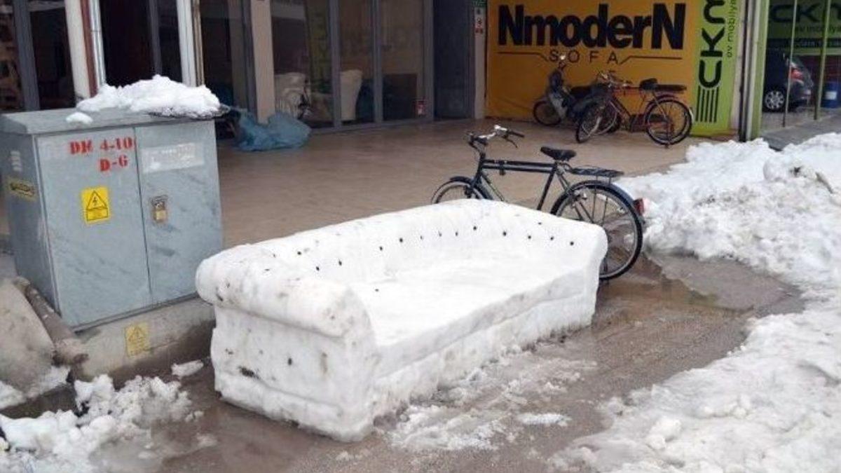 Bursa’nın İnegöl ilçesinde faaliyet gösterin bir mobilyacı kardan koltuk yaptı.İnegöl’de üç gün süren yoğun kar yağışı hayatı olumsuz etkilerken, beyaz örtü bazıları için ise eğlence oldu. Her kar yağışında alışagelmiş olan kardan adam geleneği, mobilyanın başkenti İnegöl’de bozuldu. İnegöl’de faaliyet gösteren bir mobilyacı, kardan koltuk yaparak dikkatleri üzerine çekti. Gerçeği aratmayan kardan koltuk 4 saatte tamamlandı. "Burası mobilyanın başkenti" dedirten koltuk, ilgi odağı olurken, esnaf ve vatandaşlar bol bol hatıra fotoğrafı çekinmeyi ihmal etmedi.Kardan koltuğun mimarı, İnegöl Mobilyacılar Sanayi bölgesi 8. Sokak’ta faaliyet gösteren firmanın sahibi Sinan Can, “Alışılmışın dışında bir şey yapmak istedik ve yaptığımız işe uygun olarak kardan koltuk yaptık. Kardan koltuğu dört saatte tamamladık. Gerçeği bu kadar kolay olmuyor. Gerçeğinin kanepesi bir gün sürüyor ama kardan kolay bir şekilde böyle eğlenceli güzel bir şey yaptık” dedi.Kardan koltuğu yapmaya başladıklarında vatandaşın pek anlam veremediğini ifade eden Can, bitirildikten sonra koltuğun çok beğenildiğini de sözlerine ekledi.