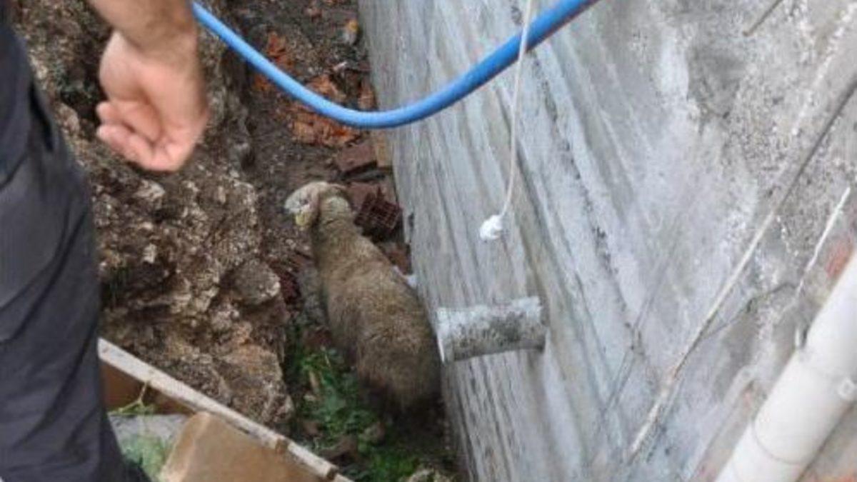 Hakan TÜRKTAN /ESKİŞEHİR, Çankaya Mahallesi Nilüfer Caddesi'nde öğle saatlerinde bir inşaatın temelinin yanındaki çukurda bir koyunun olduğunu gören vatandaşlar, 155 polis İmdat hattını arayarak ihbarda bulundu. Gelen polis ekipleri yaklaşık 2 metrelik çukura düşen koyunun çıkarılması için durumu itfaiye yetkililerine bildirdi. Gelen Eskişehir Büyükşehir Belediyesi itfaiyesi ekibinde yer alan bir kişi konulan merdivenle çukura inerek koyunun boynuna ip geçirdi. Aynı itfaiye eri, koyunu kacaklayarak merdiveninin bulunduğu yere getirdi ve arkadaşlarının yardımıyla çukurdan çıkardı.