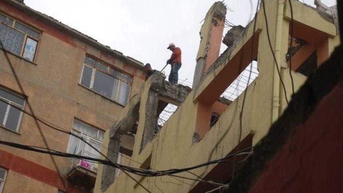 Batman’da 6-7 Ekim olaylarında zarar gören bir binada hilti ile çalışan işçiler dikkat çekti.Batman merkezde bulunan ve 6-7 Ekim’de çıkan olaylarda zarar gören 7 katlı PTT binası onarılmaya başlandı. İnşaatın onarım çalışmasında en üst katında iki beton kolun üzerinde hilti ile çalışan işçiler dikkat çekti. Baret takmayıp, gerekli tedbirleri almadan çalıştığı gözlenen işçileri çevreden geçen vatandaşlar da bir süre izledi. Birçok vatandaş çalışmayı cep telefonlarıyla kaydetmeyi de ihmal etmedi. Hilti ile betonları kırmaya çalışan işçinin yanındaki diğer bir işçi de elindeki balyoz ile betonları parçaladı.