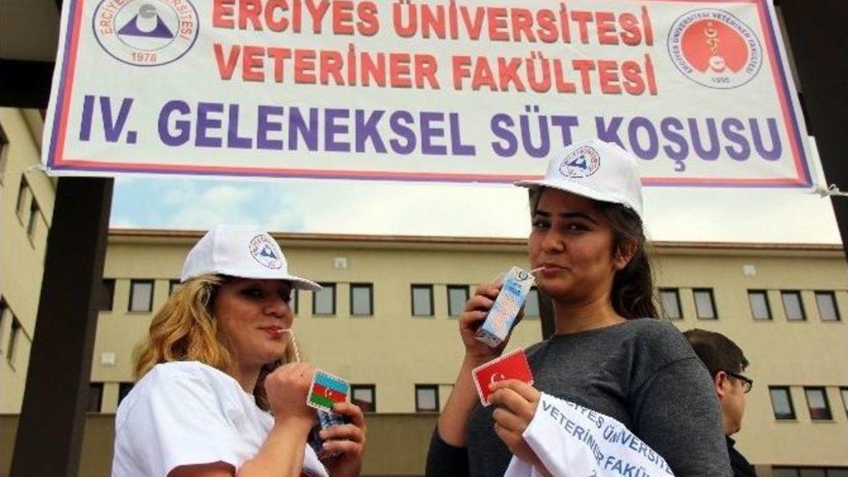 Erciyes Üniversitesi (ERÜ) Veterinerlik Fakültesi tarafından süt ve süt ürünlerine, doğru beslenmeye yönelik farkındalık yaratmak amacıyla düzenlenen ‘Süt Koşusu’nun 4.’sü yapıldı.ERÜ Veterinerlik Fakültesi tarafından her yıl geleneksel olarak düzenlenen Süt Koşusu’nun dördüncüsü yapıldı. Betül-Ziya Eren Genom ve Kök Hücre Merkezi’nde düzenlenen Süt Koşusu’nda öğrenciler dereceye girebilmek için birbiriyle yarıştı. Koşu hakkında bilgiler veren ERÜ Veterinerlik Fakültesi Gıda Hijyeni ve Teknolojisi Anabilim Dalı Öğretim Üyesi Doç. Dr. Yeliz Yıldırım, süt ve süt ürünleri ile düzenli beslenmeye dikkat çekmek için böyle bir uygulama yaptıklarını belirterek, ülkenin bu konuda Avrupa’dan çok geri kaldığını vurguladı. Yıldırım, “4 senedir devam ediyoruz. Amacı süt ve süt ürünlerine farkındalık yaratmak. Dünyada aynı anda kutlanıyor ‘Obezite ile Savaş, Dünya Süt Günü’. Obezite dünyanın çok ciddi bir problemi. Son 10 yılda rakamlar yüzde 10-20 civarında artış gösteriyor. Çocukluk çağlarından itibaren düzensiz beslenme ile ilerleyen bir durum. Tabi ülkemizde de bununla ilgili ciddi sıkıntılar var. Süt ve süt ürünleri ile ilgili ciddi eksiklikler var. Avrupa Birliği’nin, Amerika’nın çok çok gerisindeyiz bu konuda. Maalesef çok yanlış bir takım yönlendirmeler de buna sebep oluyor. Sosyo-ekonomik sıkıntılar da buna sebep oluyor. Bizim amacımız süt ve süt ürünlerine, doğru ve dengeli beslenmeye yönelik bir vurgu yapmak. Çünkü zaten zaman zaman bu vurgunun yapılması gerekiyor. Dolayısıyla bunu bir sorumluluk olarak düşündük ve düğmeye bastık” ifadelerini kullandı.Yapılan koşuda Bekir Eralp Döngeloğlu birinci, Hüseyin Aksu ikinci, Yusuf Yavuz da üçüncü oldu. Dereceye girenlere madalya ve çeşitli hediyeler takdim edildi. Koşuda sonuncu gelen öğrenciye de 1 litre süt verildi.