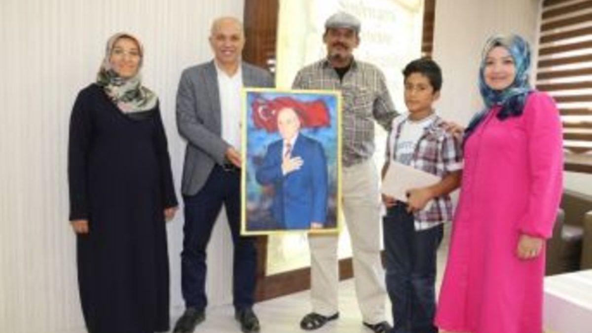 Ülkesinde yaşanan savaş nedeniyle Türkiye’ye gelen ve Karaman’a yerleşen Iraklı mülteci Halid İbrahim, Belediye Başkanı Ertuğrul Çalışkan’a bir tablo hediye etti.Irak’ta yaşanan iç karışıklık ve savaş nedeniyle yaklaşık 4 yıl önce ailesi ile birlikte Türkiye’ye gelen ve Karaman’a yerleşen Halid İbrahim, Belediye Başkanı Ertuğrul Çalışkan’ı makamında ziyaret etti. Ziyarette Belediye Meclis Üyesi Elmas Coşar ve Kent Konseyi Mülteci Komisyonu Başkanı Emine Erdemsoy da hazır bulundu. Ülkesinde inşaat mühendisi olan, aynı zamanda profesyonel ressamlık ve heykeltıraşlık yapan Halid İbrahim, Başkan Ertuğrul Çalışkan’ın resmini yaptığı tabloyu kendisine hediye etti. Ziyaretten duyduğu memnuniyeti dile getiren Belediye Başkanı Ertuğrul Çalışkan, "İslam coğrafyasında yıllardır Müslüman kardeşlerimizin kanı akıyor. Türkiye olarak ülkelerindeki bu zulümden kaçarak ülkemize gelen kardeşlerimize kapılarımızı sonuna kadar açtık. Şehrimizde de misafir ettiğimiz mülteciler var. Kent Konseyimiz bünyesinde kurulan mülteci komisyonu ile bu kardeşlerimizle yakından ilgileniyoruz. Bu kardeşlerimizden birisi olan Halid İbrahim, bu anlamlı hediyesinden dolayı çok teşekkür ediyorum" dedi.