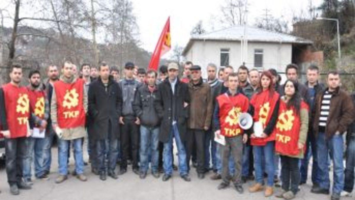 İş bırakma eylemi başlatan maden işçilerine, bir grup Türkiye Komünist Partisi (TKP) üyesi de destek olmak üzere iş yeri önüne geldi.