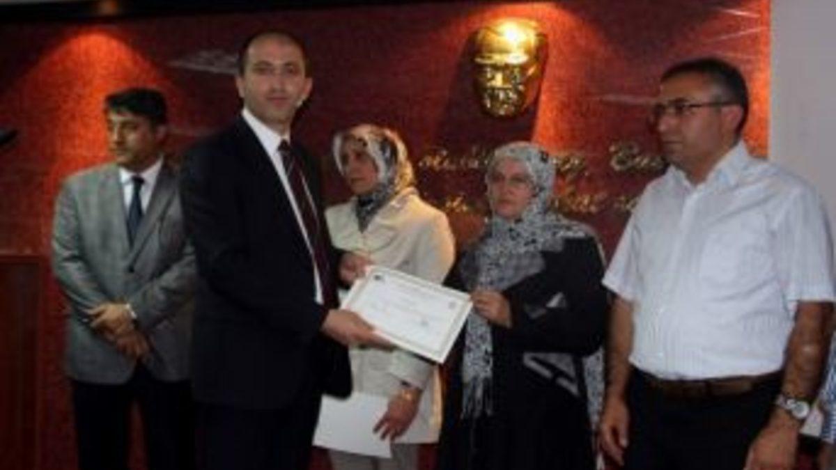 Yapılan konuşmaların ardından girişimcilik eğitimine katılarak sertifika almaya hak kazananlara sertifikaları Vali Yardımcısı Veysel Çiftçi, Belediye Başkan Yardımcısı Orhan Demirok, Esnaf ve Sanatkarlar Odaları Birliği Başkanı Beşir Köksal, Bilim Sanayi ve Toknoloji Müdürü Tanzer Erdem, KOSGEB Müdürü Hüsamettin Çay, Çalışma ve İş Kur Müdürü Nabi Soysal, Esnaf ve Sanatkarlar Kredi ve Kefalet Kooperatifi Başkanı Yüksel Demirgil ve oda başkanları tarafından verildi.