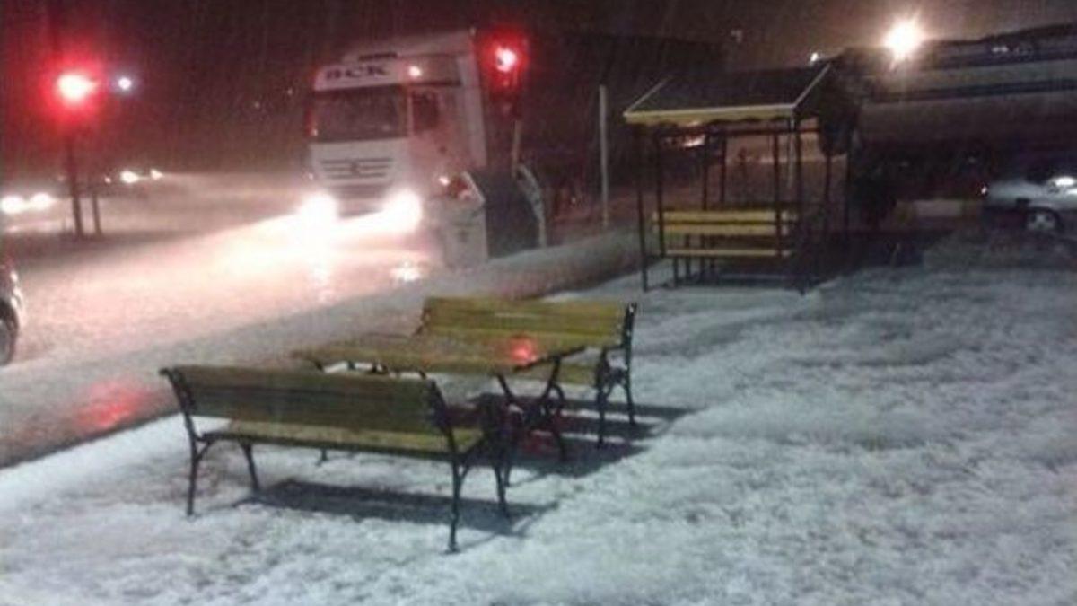 Hatay’ın İskenderun ilçesinde ceviz büyüklüğünde yağan dolunun ardından ilçe beyaza büründü.İskenderun’un Sarıseki Mahallesi’nde akşam saatlerinde fırtınayla birlikte başlayan sağanak yağmurun ardından ceviz büyüklüğünde dolu yağdı. Yaklaşık 20 dakika süren yağış sırasında her yer bembeyaza büründü. Gök gürültüsü ile birlikte evlerinin camlarına çarpan ceviz büyüklüğündeki doluyu gören vatandaşlar paniğe kapıldı. Ekili alanların zarar gördüğünü belirten vatandaşlar Sarıseki bölgesinde ilk kez bu kadar büyük dolu yağışı ile karşılaştıklarını söylediler.