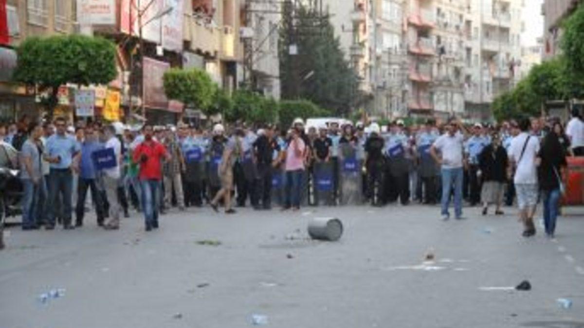 Hatay’ın İskenderun ilçesinde Taksim olaylarını protesto eden grubun kent merkezinde polislere karşı taşlı sopalı direnmesi...