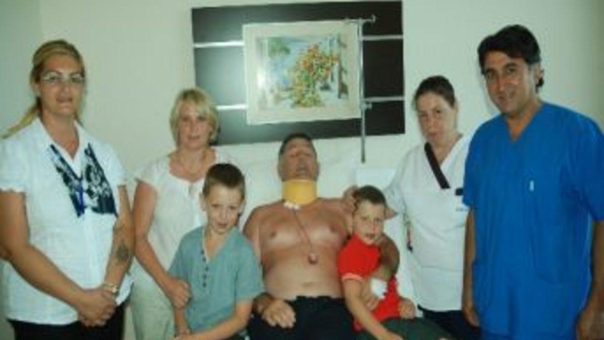 Olay, geçtiğimiz cuma günü Manavgat'ta meydana geldi. Eşi Therese Mcsorley (47), çocukları Ross (8) ve Marc Mcsorley ile (12) ile birlikte Side’ye tatile gelen ve İskoçya’nın Grasgov kentinde proje menajerliği yaptığı öğrenilen Craiç Mcsorley (47), su parkında kayarken kafasının üzerine düşerek ağır yaralandı. Hastaneye kaldırılan Mcsorley'in omurgasının kırıldığı ve omuriliğinin hasar gördüğü belirlendi. İskoç turist, Manavgat Özel Sevgi Hastanesi'nde yapılan tetkiklerin ardından ameliyata alındı. Mcsorley'in kırık omur kemiğinin yerine titanyum kafes yerleştirildi. Aradan geçen 4 günde iyileşme gösteren Mcsorley, felçli geldiği hastanede ellerini oynatıp yatağından doğrulmaya başladı.