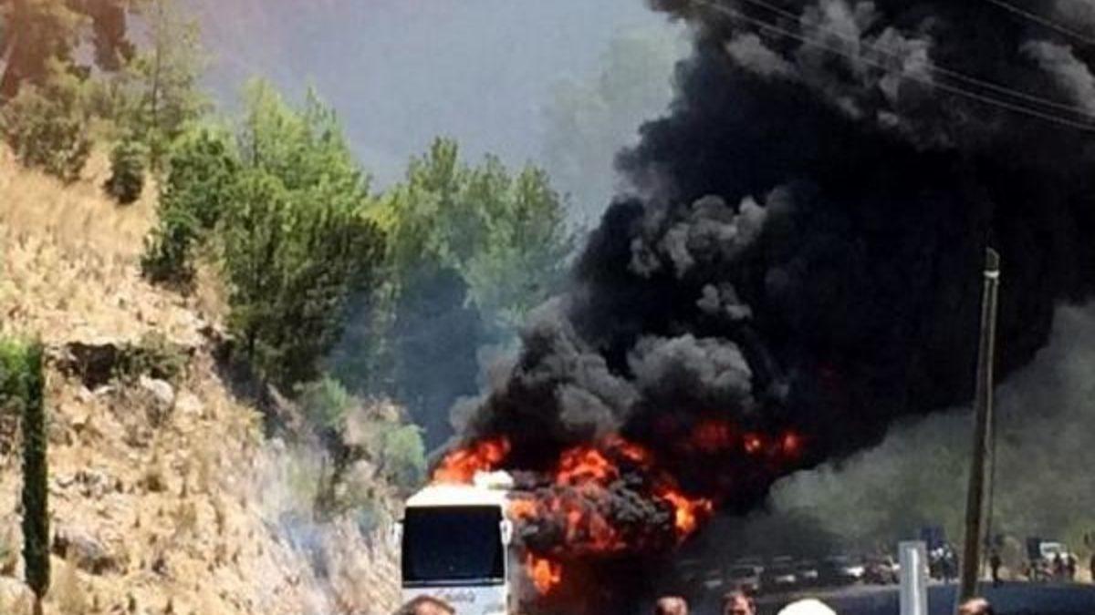 Saat 13.00 sıralarında çıkan yangın nedeniyle araç hemen tahliye edilirken, olayda ölen ve yaralanan kimsenin olmadığı belirtildi. Yangın nedeniyle olay yerine çok sayıda itfaiye, polis ve sağlık ekibi sevk edildi. Yangının ağaçlık alana da sıçradığı belirtildi.