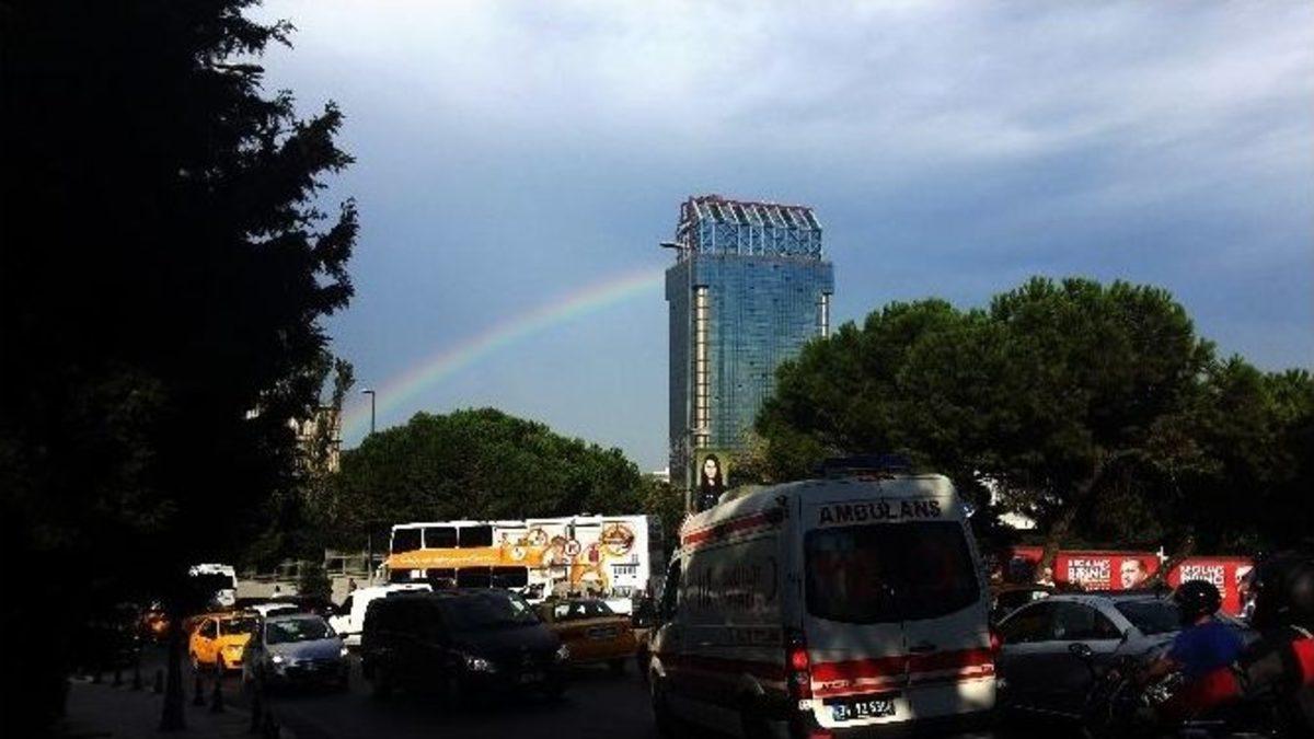 İstanbul’da akşam saatlerinde oluşan gökkuşağı trafikte renkli görüntüler oluşturdu.İstanbul’da kısa süreli etkili olan yağış sonrası gökyüzünde gökkuşağı belirlendi. Beşiktaş çevresinde görülen gökkuşağını trafikte kalan sürücüler ilgiyle izledi.
