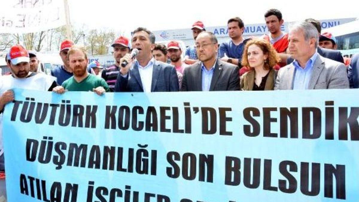 İZMİT Köseköy Tüv-Türk Araç Muayene İstasyonu önünde aileleriyle birlikte bekleyen işçilere destek ziyaretleri sürerken, bugün de Uluslararası Taşımacılık İşçileri Federasyonu Tüm Tis Genel Başkanı Kenan Öztürk yaptığı konuşmada, İşçilerin hukuk dışı bir uygulmayla işlerinden çıkarıldığını savunarak şöyle dedi:
