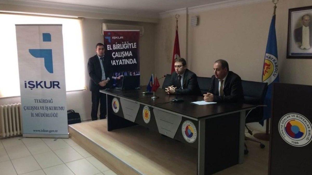 Tekirdağ’ın Hayrabolu ilçesinde gerçekleştirilen İstihdam Teşviki Bilgilendirme toplantısında, yayımlanan istihdam teşviki ile ilgili sunumda çeşitli bilgilendirmeler yapıldı.Tekirdağ İlçesi Hayrabolu Ticaret ve Sanayi Odası toplantı salonunda Kaymakam Vekili Dr. İsmail Altan Demirayak’ın katılımıyla yapılan toplantıda, İŞKUR Tekirdağ İl Müdürü Yaşar Esen tarafından katılımcılara 09/02/2017 tarih ve 29974 Sayılı Resmi Gazete’de KHK/687 ile yayımlanan istihdam teşviki hakkında sunum yapıldı. Sunum sonrasında katılımcıların soruları cevaplandırıldı.Toplantıya Kaymakam Vekili Dr. İ. Altan Demirayak’ın yanı sıra kamu kurum amirleri ve işyeri temsilcileri ile İlçemiz esnafı katıldı. 09 Şubat 2017 tarih ve 29974 Sayılı Resmi Gazete’de KHK/687 ile yayımlanan istihdam teşviki ile ilgili sunumda şu konularda bilgilendirmeler yapıldı:“Teşvik uygulamasından özel sektör işverenleri yararlanacaktır. İşverenler, 31/12/2017 tarihine kadar 2016/Aralık ayına ilişkin aylık prim ve hizmet belgelerindeki sigortalı sayısına ilave aldıkları her bir sigortalı için bu teşvikten yararlanacaktır. İşverenlerin 01/02/2017 tarihinden itibaren mevcut çalışanlarına ilave alacakları sigortalıların; İŞKUR’a kayıtlı işsiz olmaları ve işe alındıkları tarihten önceki üç aya ilişkin Sosyal Güvenlik Kurumuna verilen aylık prim ve hizmet belgelerinde veya muhtasar ve prim hizmet beyannamelerinde kayıtlı sigortalılar dışında olmaları gerekmektedir. Bugün için bir çalışanın işverene maliyeti 2 bin 177 TL’dir. (SGK tarafından uygulanan 5 puanlık prim indirimi sonrasında işveren maliyeti 2 bin 88,56 TL olmaktadır.) Uygulanacak teşvikle işverenler, mevcut çalışanlarına ilave olarak iş alacakları her 1 sigortalı için sadece 1 bin 404 TL ödeyecek olup, geriye kalan 773 TL tutarındaki prim ve vergi yükümlülükleri devlet tarafından karşılanacaktır. Başka bir deyişle, ilave istihdam edilen her bir kişi için işverenlerin maliyeti 773 TL azalacaktır. Teşvik uygulaması 31 Aralık 2017 tarihine kadar geçerli olacaktır. Bu teşvikten yararlanacak işverenler, aynı sigortalı için aynı dönemde diğer sigorta primi teşvik, destek ve indirimlerden yararlanamayacaklardır.