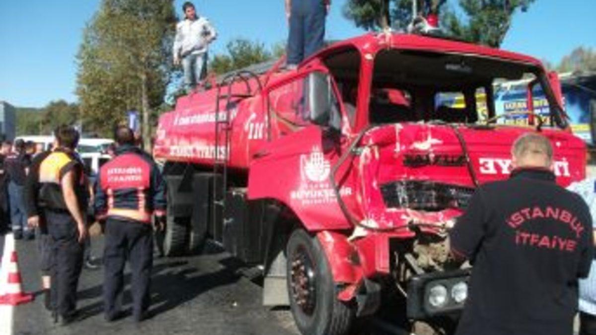 Araç şoförü İsmail Koç ise kazayı yara almadan atlattı. İstinye Devlet Hastanesi’ne kaldırılan Fatih Kahraman’ın hayati tehlikesinin bulunmadığı, vücudunda ezikler olduğu öğrenildi. Kaza nedeniyle ön tarafı tamamen tahrip olan su tankerindeki malzemeler ise başka bir itfaiye aracına taşındı.