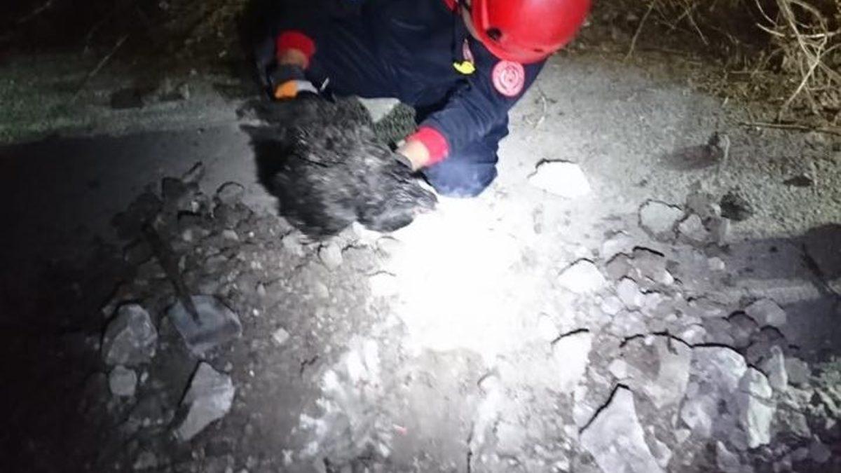 Elazığ’da su borusuna sıkışan tavuğu itfaiye ekipleri asfaltı hilti ile delerek kurtardı.
