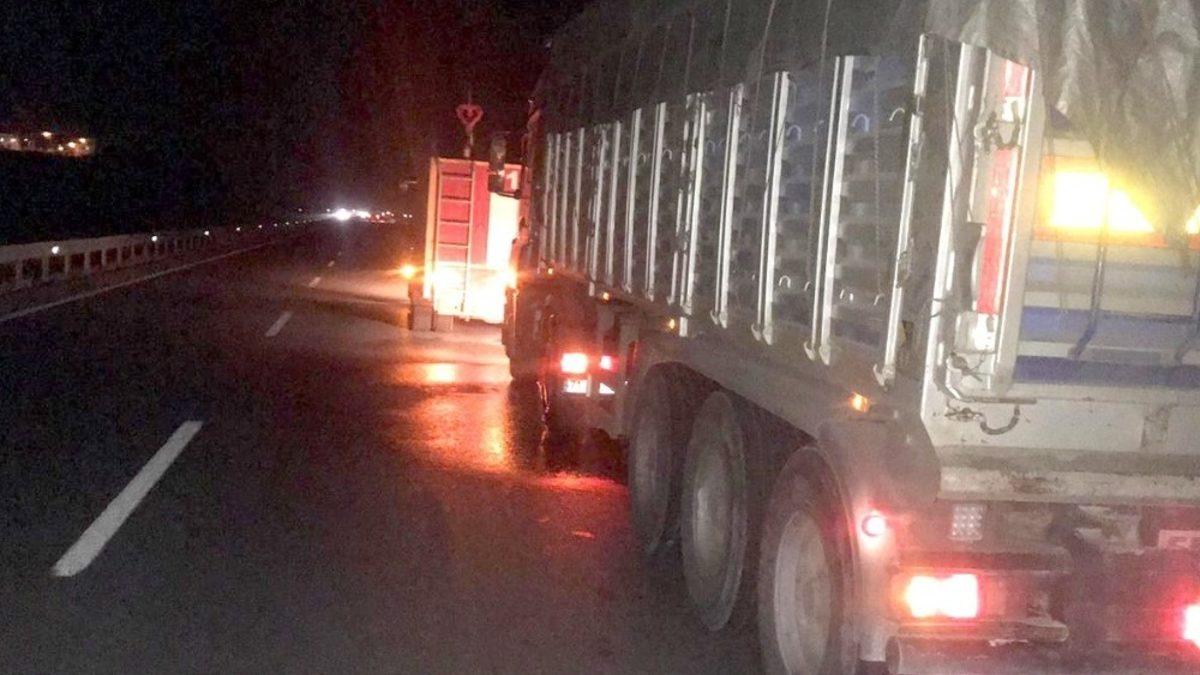 Çorum’un Sungurlu ilçesinde, hareket halindeyken aşırı derecede ısınan balatalar nedeniyle alev alan tırın lastikleri, itfaiye ekiplerince söndürüldü.