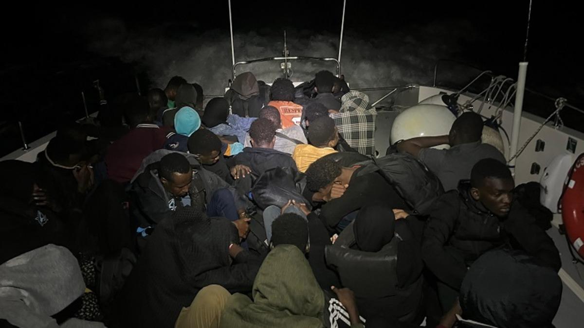 Yine ilçe açıklarında lastik botta düzensiz göçmenlerin olduğu bilgisi üzerine bölgeye yönlendirilen Sahil Güvenlik ekipleri, durdurdukları bottaki 1'i çocuk 34 düzensiz göçmeni yakaladı.