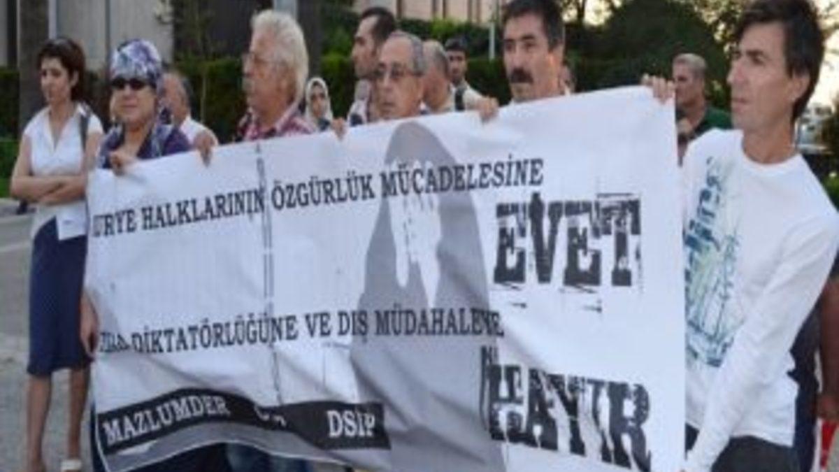 İZMİR (İHA) – İzmir’de bazı sivil toplum üyeleri, Meclis’te kabul edilen Suriye tezkeresini protesto etti.