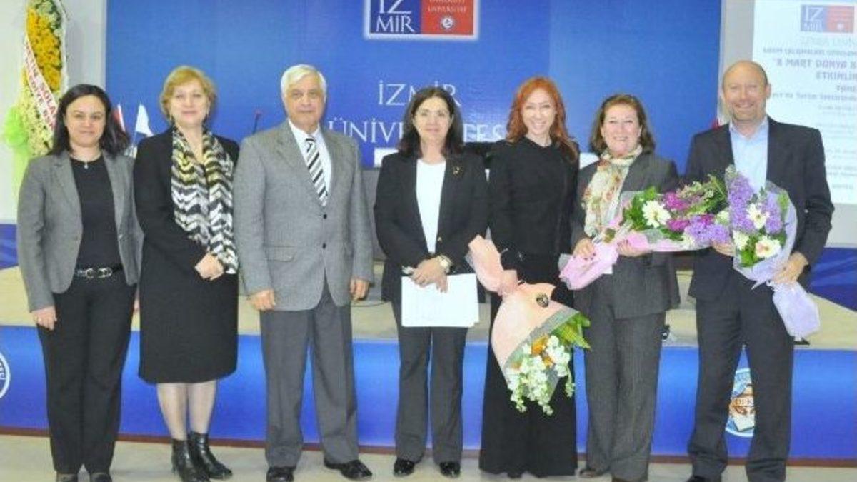 Kadın Çalışmaları Uygulama ve Araştırma Merkezi tarafından organize Dünya Kadınlar Günü etkinlikleri çerçevesinde Crown Plaza Genel Müdürü Funda Bezircilioğlu, İZÜ'ye konuk oldu. “İzmir’de Turizm Sektöründe Kadın Yönetici Olmak” başlıklı panelin ardından İZÜ Uluslararası İlişkiler Bölümü öğrencisi Emir Tavalıoğlu’nun yazıp yönettiği “Gereği Düşünüldü” filminin gösterimi yapıldı. MYO Turizm ve Otel İşletmeciliği Program Başkanı Öğr. Gör. Dr. Koray Akman’ın da konuşmacılar arasında yer aldığı panel, İzmir Üniversitesi Kadın Çalışmaları Uygulama ve Araştırma Merkezi Müdürü ve İİBF Dekan Yardımcısı Prof. Dr. Yıldız Y. Güzey’in konuşması ile başladı. Prof. Dr. Güzey konuşmasında, sektörde üst kademelere getirilmede kadınlara erkeklere oranla eşit fırsatlar tanınmadığı ve cinsiyet ayrımcılığının yapıldığını söyledi.