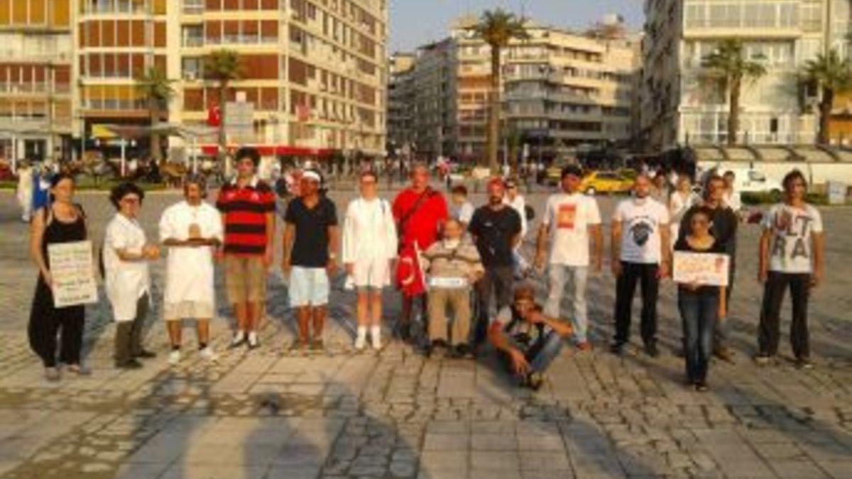 İzmir’de hem Gezi Parkı hem de Lice’de yaşanan olaylar üç ayrı grup tarafından protesto edildi. Gündoğdu Meydanı’nda bir araya gelen bir grup, yüzlerini zombi gibi boyayarak yaşananları protesto etti.