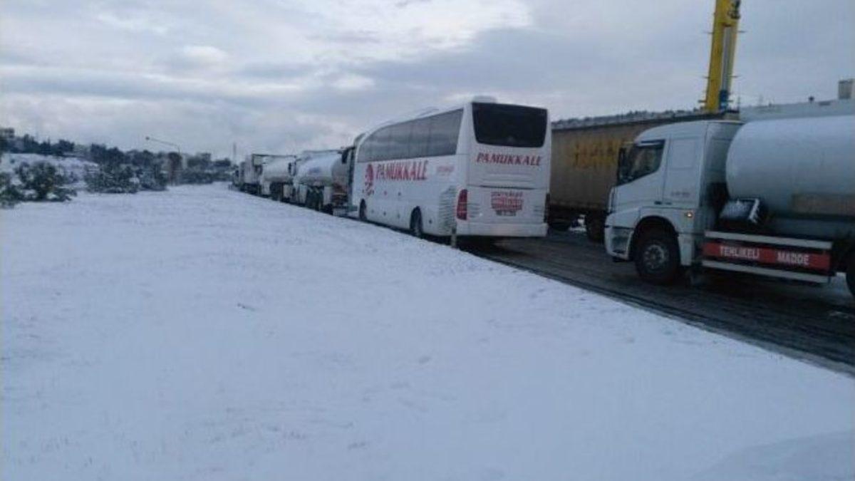 İzmir’in Menemen ilçesi ile Aliağa ilçesini bağlayan yol, kar yağışı ve buzlanma nedeniyle trafiğe kapatılırken yaklaşık 5 kilometrelik kuyruk oluştu.İzmir genelinde 2 gündür süren sağanak yağış, gece yarısından itibaren yüksek kesimlerde ve kuzey ilçelerinde kar yağışına döndü. Menemen, Aliağa, Bergama ve Dikili ilçeleri güne karla uyandı. İzmir-Çanakkale yolu olan Menemen ilçesi ile Aliağa ilçesi arasındaki karayolu, yoğun kar yağışı nedeni ve buzlanma nedeniyle Yeni Foça kavşağında araç trafiğine durduruldu. Yolun kapanması ile araç kuyruğu yaklaşık 5 kilometre oldu. Karayollarına bağlı ekiplerin, yolu açmak ve buzlanmayı önlemek için çalışmalarını sürdürdüğü öğrenildi.