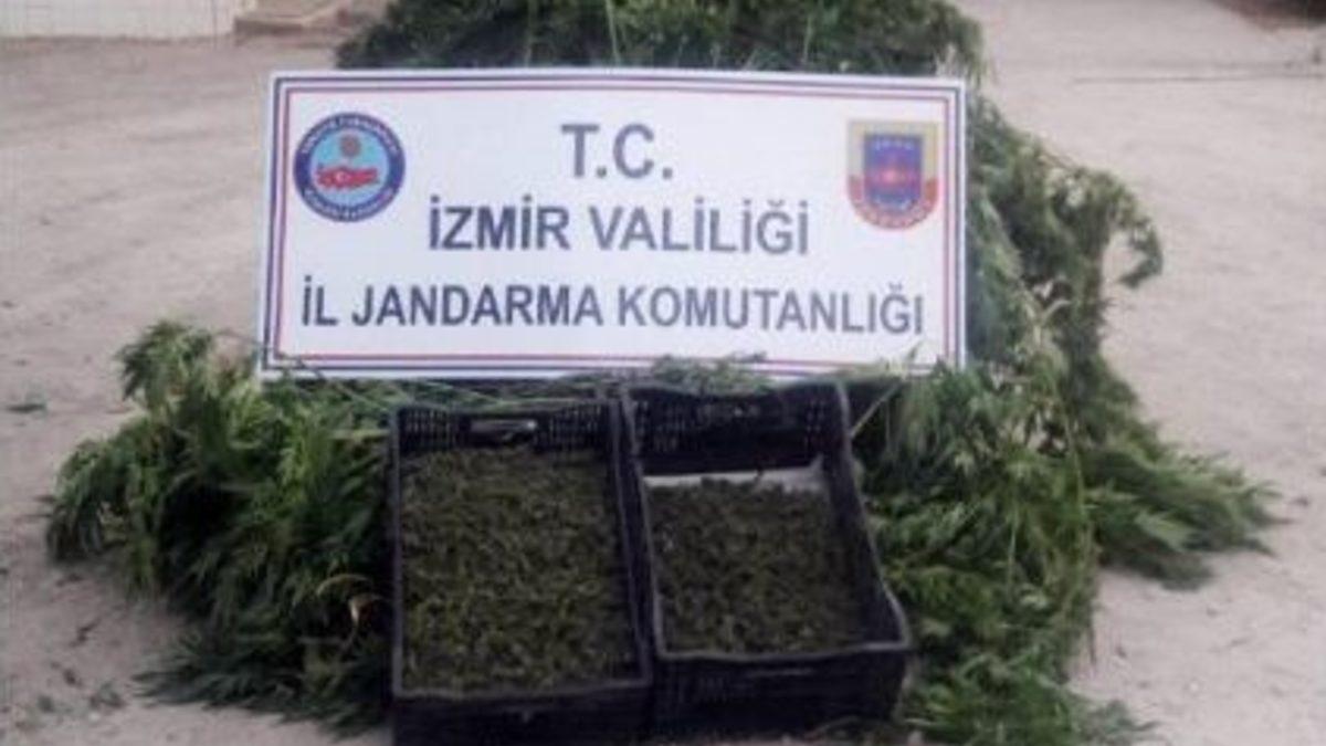 İzmir’in Kiraz ilçesinde, bahçesinde uyuşturucu üretiminde kullanılan kök kenevir yetiştiren bir eve yapılan baskında hayvan yemi arasına saklanan kubar esrar ele geçirildi.Edinilen bilgiye göre, İzmir İl Jandarma Komutanlığına bağlı ekipler, Ovacık Mahallesi Akkale Sokak’ta bulunan bir evin bahçesinde kök kenevir yetiştirildiği ihbarı üzerine harekete geçti. Söz konusu adrese baskın yapan jandarma ekipleri, evin bahçesinde belli aralıklara dikimi yapılan 123 kök kenevir bitkisi ele geçirdi. Jandarma ekiplerince evde yapılan aramalarda ise ahırda yem içine saklanan 2 bin 808 gram esrar ele geçirildi. Olayla ilgili gözaltına alınan F.E., eşi F.E. ve oğlu F.E savcılık tarafından serbest bırakıldı.