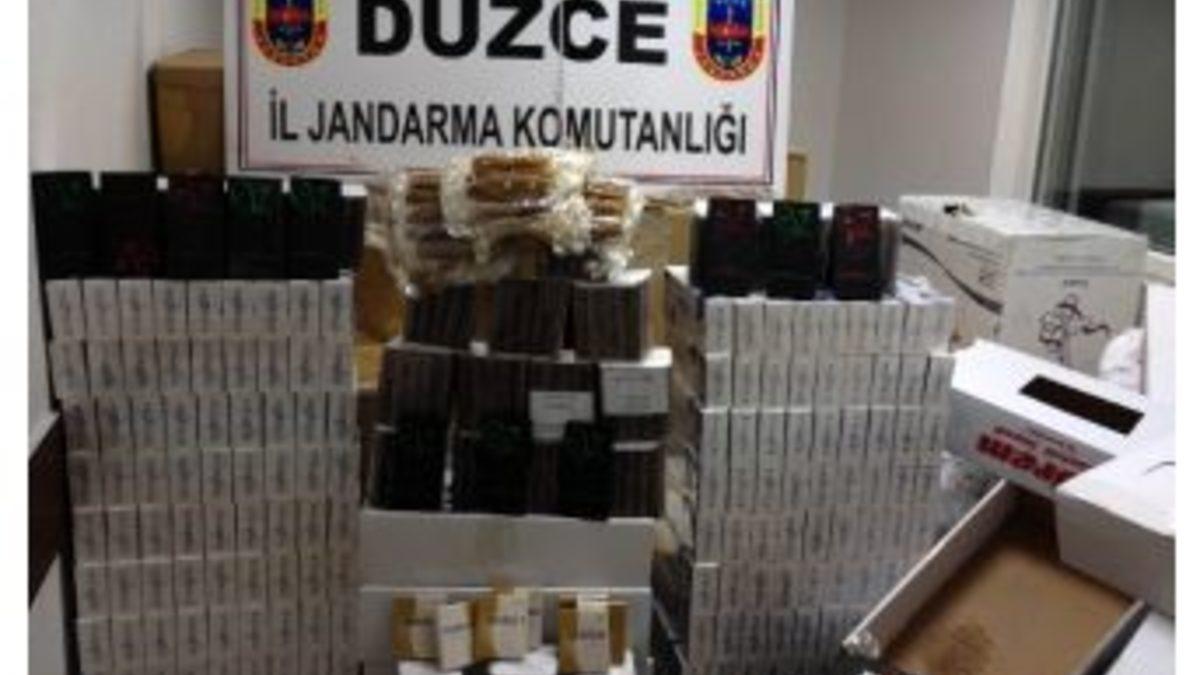 Düzce İl Jandarma Alay Komutanlığı Kaçakçılık ve Organize Suçlarla Mücadele Şube Müdürlüğü ekipleri tarafından 3 yabancı uyruklu şahsın bulunduğu araçta yapılan aramada, 10 bin paket kaçak sigara ele geçirildi.Edinilen bilgiye göre, Düzce Jandarma Kaçakçılık ve Organize Suçlarla Mücadele Şube Müdürlüğü ekiplerinin yaptığı çalışmalar neticesinde Düzce D-100 Karayolu Kaynaşlı ilçesi mevkiinde durdurulan içerisinde 3 yabancı uyruklu şahsın bulunduğu araçta yapılan aramada, 10 bin paket gümrük kaçağı sigara ele geçirildi.Yakalanan şahıslar sorgularının ardından adli makamlara sevk edildi.