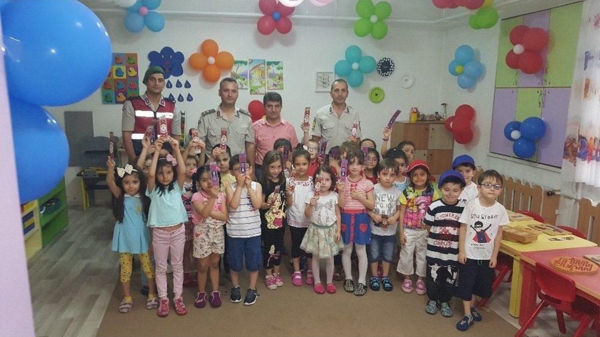 Devrek Jandarma Bölük Komutanlığı personeli ana sınıfında eğitim gören çocuklara hediye dağıttı.Jandarma Teşkilatının 178. Kuruluş yıl dönümü etkinlikleri çerçevesinde Fatih ilköğretim Okulu Ana sınıfında eğitim öğretim gören çocuklarla bir araya gelen Devrek Jandarma Bölük Komutanlığı personeli onlara çeşitli hediyeler vererek mutluluklarına ortak oldular. Personeli ile Devrek Fatih İlköğretim Okulu Ana sınıfında eğitim gören çocuklarla bir araya gelmenin mutluluğunu yaşayan İlçe Jandarma Bölük Komutanı Jandarma Üsteğmen Serkan Koparan düzenlenen program ile ilgili şunları söyledi:"Teşkilatımızın 178.kuruluş yıl dönümü etkinlikleri çerçevesinde mesai arkadaşlarımızla bir araya gelerek hem okul ziyaretinde bulunduk hem de çocuklarımıza karne hediyesi olarak çeşitli hediyeler vererek onların sevinçlerine ortak olduk. Jandarma sadece asayişi sağlayan bir kuruluş değil aynı zamanda çeşitli sosyal etkinliklerin içinde de her daim var olduğunu belirtmek isterim."