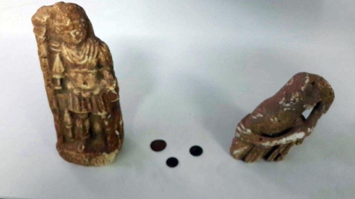 Karaman’da jandarmanın yol uygulamasında durdurduğu bir otomobilde yaptığı aramada 2 adet heykel ile 3 tane bronz sikke ele geçirildi.Edinilen bilgiye göre, Karaman-Konya karayolu üzerinde yol uygulaması yapan İl Jandarma Komutanlığına bağlı ekipler, şüphe üzerine bir otomobili durdurdu. Otomobilin içinde arama yapan ekipler koltuğun altında havlu içerisine sarılmış Roma dönemine ait olduğu tahmin edilen 16 ile 22 santim büyüklüğünde 2 adet mermer heykelle birlikte 3 tane bronz sikke ele geçirdi. Otomobil sürücüsü O.D. gözaltına alınırken, ele geçirilen malzemeler Karaman Müze Müdürlüğüne teslim edildi.