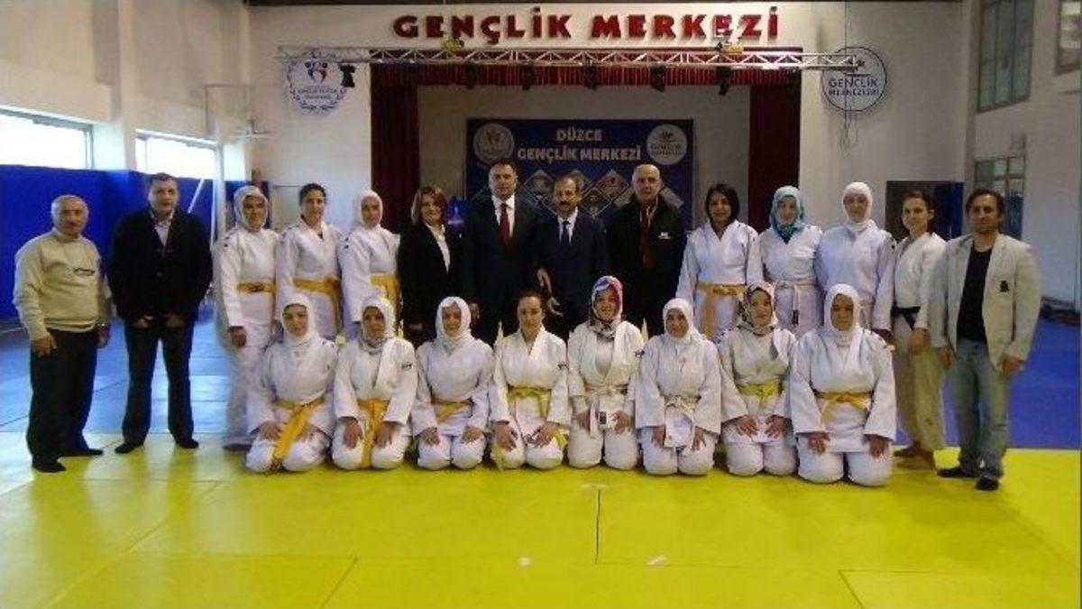 Düzce’de judo yapan çocuklarını beklerken merakla spora başlayan anneler Judo Federasyonu Başkanı Fatih Uysal’ın katıldığı törenle sarı kuşaklarını aldılar. 14 judocu annenin katıldığı törenin ilgi odağı ise judocu anne Merve Türkmen’in 34 günlük oğlu Muhammet oldu.Sporun sadece çocuklara ve gençlere yönelik olmaması gerektiğini düşünen Düzce Gençlik Hizmetleri ve Spor İl Müdürlüğünün başlattığı proje ile anneler judoyla spora yöneldiler. Düzce’nin judocu süper anneleri için kuşak töreni düzenlendi.Düzce Gençlik Hizmetleri ve Spor İl Müdürlüğünün yaptığı proje ile çocukları judo yapan anneler onları beklerken merak sardıkları judoyu yapmaya başlamışlardı. Bir süredir kurslara katılan ve gösterdikleri çabayla her yaşta spor yapılabileceğini ispatlayan anneler için kuşak töreni düzenlendi. Törene Düzce Gençlik Hizmetleri ve Spor İl Müdürü Feyzullah Dereci, Judo Federasyonu Başkanı Fatih Uysal, Judo Federasyonu Genel Koordinatörü Yavuz Yolcu, Judo Federasyonu Merkez Hakem Kurulu Başkanı Fikret Papur, Judo Federasyonu Merkez Hakem Kurulu Üyesi Cevat Güntepe, Judo Düzce İl Temsilcisi Ayhan Alayıldız ve judo antrenörü Nermin Alayıldız ile judocu anneler katıldı.Judo Federasyonu Federasyonu Başkanı Fatih Uysal’ın elinden sarı kuşaklarını alan judocu anneler, büyük mutluluk yaşadı.Judo Federasyonu Başkanı Fatih Uysal, Düzce’de başlayan projenin bütün Türkiye’ye yarışması için çalışma yaptıklarını söyledi. Fatih Uysal, “Projenin Düzce’de başlamasının ardından şu anda Türkiye genelinde 5 ilde anneler judo yapmaya başladılar. Bayan judo antrenörümüzün olduğu illerde bu projeyi yaygınlaştıracağız. Bunun çalışmaları devam ediyor. Ayrıca Türkiye genelinde annelerden oluşan judo takımlarımızın bir araya geleceği bir turnuva yapmak için çalışmalarımız sürüyor” dedi.Düzce Gençlik Hizmetleri İl Müdürü Feyzullah Dereci ise, “Judo adına yapılan çalışmaların başarılı olması bizleri mutlu ediyor. Düzce’de başlayan bu projemiz, buradan bütün Türkiye’ye yayılacak. Bu bize gurur veriyor” dedi.EN KÜÇÜK JUDOCU 34 GÜNLÜK MUHAMMETKuşak törenine katılan anneler içindeki Merve Türkmen’in 34 günlük oğlu Muhammet ilgi odağı oldu. Judo Federasyonu başkanı Fatih Uysal ve Federasyon Genel Koordinatörü Yavuz Yolcu’da 34 günlük Muhammet’e Judo Federasyonu rozeti taktılar. Antrenman ve kuşak töreni sırasında da annesi Merve Türkmen’den 1 dakika olsun ayrılmayan Muhammet bebeğe, judocu annelerde yoğun ilgi gösterdi. Anne Merve Türkmen, “2 Yıldır judo yapıyorum. Oğlum judoya geliyordu. Onunla birlikte gelirken Nermin hocamızın sayesinde başladık. Judo yapmak zor. Ancak spor yapmak hiçbir şeye zorluk değil” diye konuştu.ANNELER JUDO İLE RAHATLIYORJudo yapan anneler ise hayatın stresine karşı spor yaparak rahatladıklarını söylediler. Judocu annelerden Rabia Kalkan, “2 senedir judo yapıyorum. Hem anneyim hem çalışıyorum. Burada hayatın bütün stresinden kurtuluyorum. Rahatlıyorum. Kadınlar günlere gidiyor biz de burada buluşuyoruz. Hem spor yapıyoruz hemde eğleniyoruz. Beni görünce çocuğumda daha bir hevesle buraya geliyor. Zaten kuşak olarak benden üste olduğu için bana hocalıkta yapıyor. Bu da onun motivasyonu açısından güzel oldu” diye konuştu.Judocu annelere eğitim veren antrenör Nermin Alayıldız ise, “Annelerin hepsi aslında bizim velimiz. Hepsinin çocukları burada judo yapıyor. Çocuklarını izlerken hareketleri öğrendiklerini fark ettim. Sonra annelerimizi mindere sokmaya karar verdim. Sağ olsunlar onlarda beni yanıltmadılar. Şimdi 14 sporcumuzun tamamı da Gençlik Hizmetleri ve Spor İl Müdürlüğümüzün lisanslı sporcuları” şeklinde konuştu.