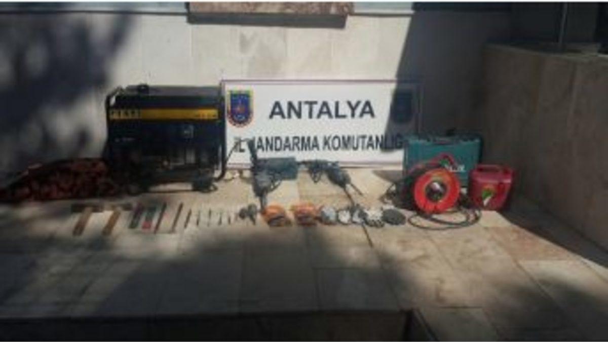 Antalya’nın Korkuteli ilçesinde kaçak kazı yapan 4 kişi suçüstü yakalandı.Korkuteli ilçesine bağlı Osman Kalfalar Mahallesi’nde kaçak kazı yapan 4 kişi Jandarma tarafından suçüstü yakalandı. Kaçak kazıcıların malzemelerine el konurken, ifadelerinin ardından Cumhuriyet Savcılığına sevk edildiler.Bir ihbarı değerlendiren Korkuteli İlçe Jandarma Komutanlığına bağlı Kızılcadağ Karakol Komutanlığı ekipleri, kaçak kazı yapan B.C., G.G., R.D., A.U.’yu yakaladı. Jandarma ekipleri, kaçak kazıda kullanılan jeneratör, hilti, kablo, kürek, battaniye ve değişik iş makinelerine el koydu. Kaçak kazı yapan 4 kişi ifadelerinin ardından Cumhuriyet Savcılığına sevk edildi.