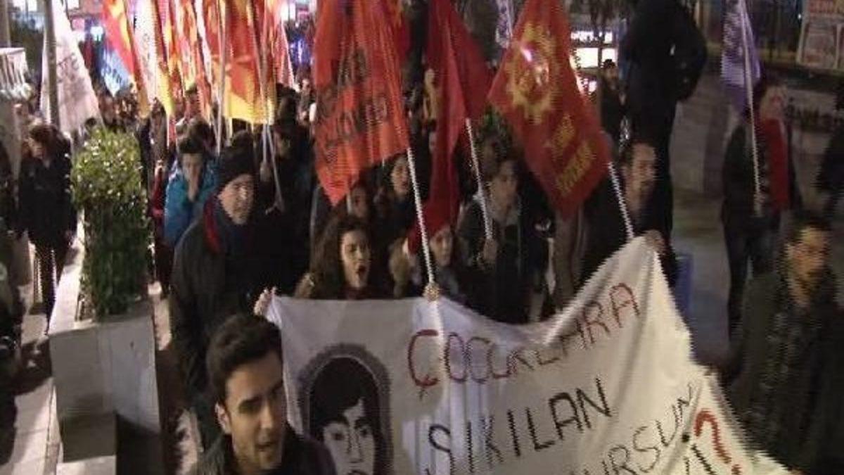 Naci ÖNER - Mehmet AKTARAN / İstanbul, Altıyol'daki Boğa Heykeli önünde saat 19.00 sıralarında buluşan binlerce kişi, ellerinde pankart, döviz ve bayraklarla ara sokaklardan slogan atarak yürüyüşe geçti. Grup, Mehmet Ayvalıtaş Parkı önünde saygı duruşunda bulunarak, Gezi Parkı olaylarında hayatını kaybeden gençleri andı.