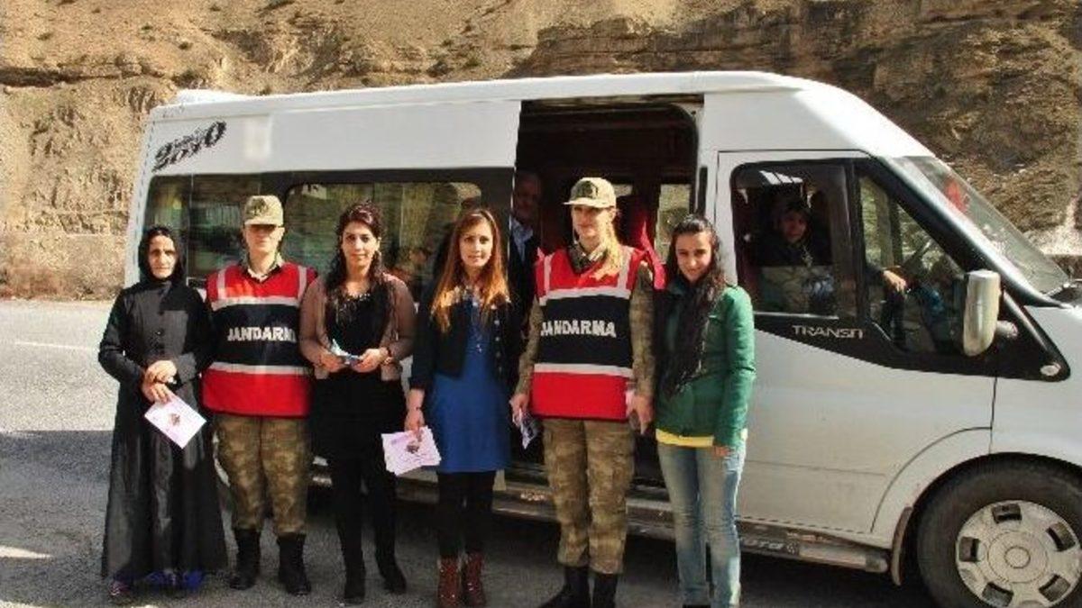 Hakkari İl Jandarma Komutanlığına bağlı trafik ve asayiş ekipleri tarafından, ‘8 Mart Dünya Kadınlar Günü’ dolayısıyla trafikteki kadın sürücü ve yolcuların kadınlar günü kutlandı.Hakkari İl Jandarma Komutanlığı Trafik ve Asayiş ekipleri, şehir merkezinden 35 kilometre uzaklıkta Hakkari-Van karayolu üzerinde bulunan Zap Jandarma Karakolunda yaptıkları asayiş çalışmasında Jandarmanın 175’inci Kuruluş Yılı anısına hazırlanan hediyeleri, 8 Mart Dünya Kadınlar Günü dolayısıyla kadın sürücü ve yolcuların kadınlar gününü kutlayarak, kendilerine çeşitli hediyeler takdim etti. Vatandaşların memnun oldukları gözlenen uygulamada, mutlu ve gelişmiş bir topluma giden yolun, kadınların mutlu ve güvende olmasından geçtiği, ifade edilerek, kadına yönelik şiddetin önlenmesi için vatandaşların duyarlı olması ve bir suçla karşılaşmaları halinde 156 Jandarma İhbar hattına müracaat etmelerinin önemli olduğu belirtildi.