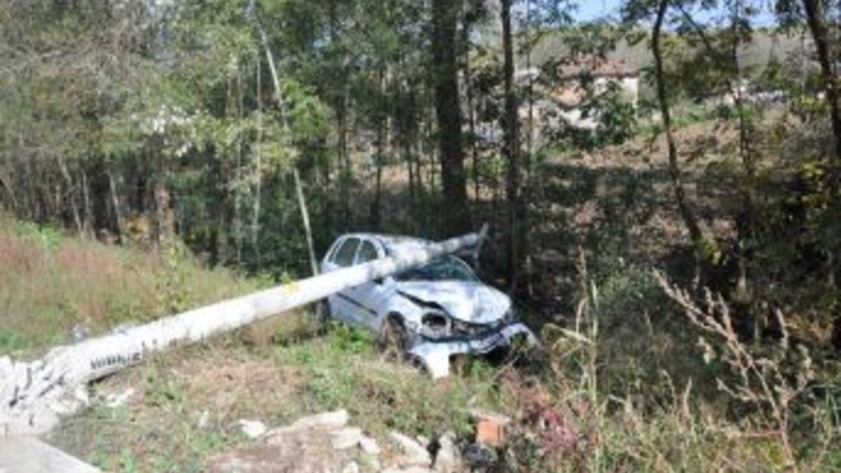 Sakarya'nın Akyazı ilçesinde kadın öğretmen kullandığı otomobilin yoldan çıkarak elektrik direğine çarpması sonucu yaralandı.