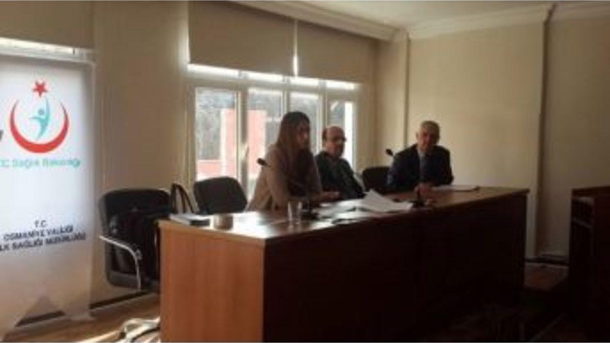 Osmaniye Halk Sağlığı Müdürlüğü, Osmaniye İl Müftülüğü Konferans Salonunda ‘Kadına yönelik şiddet konulu konferans düzenledi.Birleşmiş Milletler tarafından 1999 yılından çıkartılan karar ile her yıl Kasım ayında anılan “Kadına Yönelik Şiddete Karşı Uluslararası Mücadele ve Dayanışma Günü” kapsamında Halk Sağlığı Müdürlüğüne bağlı Bulaşıcı Olmayan Hastalıklar Programlar ve Kanser Şubesi Ruh Sağlığı Birimi, Psikolog Buket Kurt ve Sosyal Çalışmacı Ömer Doğan tarafından katılımcılara ”Kadına Yönelik Şiddet Nedir, Şiddetin Çeşitleri Ve Boyutlar Nelerdir, Şiddet Gören Kişilerin Hangi Kurumlara Nasıl Başvuru Yapacağı Ve Kadın Konuk Evinin İşleyişi” hakkında eğitim verildi.Verilen eğitime imamlar, müezzinler, kuran kursu öğretmenleri ve müftülük personelleri katıldı.
