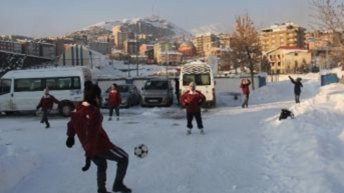 Kadınlar Futbol 2. Ligi'nde mücadele eden Hakkari Gücü Kadın Futbol Takımı, stadın karla kaplı olmasından...
