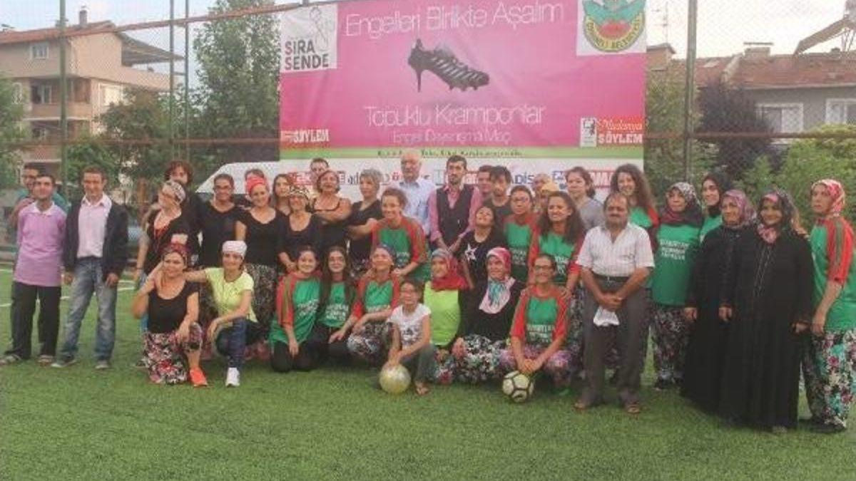 Bursa'da daha önce kanser hastası 3 çocuklu bir anneye yardım sağlamak amacıyla 'Topuklu Krampolar' projesi kapsamında maçlar düzenleyen bir grup gönüllü kadın, bu kez de Orhaneli Belediyesi'nin evsahipliğinde düzenlenen engellilere atölye kurmak için ilçedeki kadınlarla sahaya çıktı. Her iki takımın oyuncularının yöreye özgü şalvarlarla çıktığı maçın galibi 6-2'lik skorla Orhanelili kadınlar oldu.