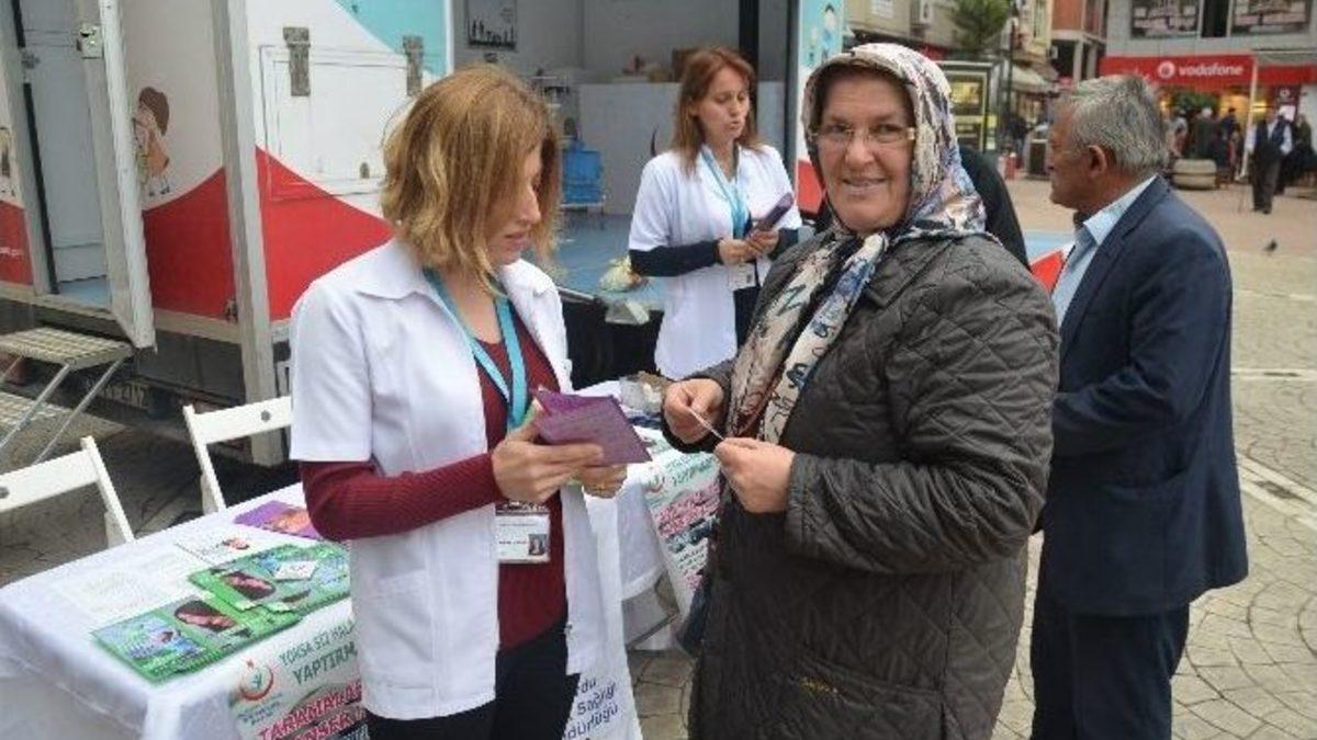 Fatsa Toplum Sağlığı Merkezi Müdürü Dr. Işıl Aralan, kadınlarda görülen kanserler içerisinde ilk sırada meme kanserinin geldiğini, yapılan araştırmalarda kadınlarda görülen her dört kanserden birinin meme kanseri olduğunu gösterdiğini söyledi.Ordu’nun Fatsa ilçesinde ‘Meme Kanseri Bilinçlendirme Ayı’ etkinlikleri kapsamında Toplum Sağlığı Merkezi görevlilerince Cumhuriyet Meydanı’nda stant açılarak sağlık görevlilerince bilinçlendirilme yapıldı. Açılan stantta bayan vatandaşlara bilgi broşürü ve konu ile ilgili bilgiler veren Toplum Sağlığı Merkezi görevlileri ‘meme kanseri bilinçlendirme’ ayı etkinlikleri kapsamında vatandaşları bilgilendirme yapıldı. Fatsa Toplum Sağlığı Merkezi Müdürü Dr. Işıl Aralan hafta etkinlikleri kapsamında stant açarak vatandaşları bilgilendirdiklerini belirterek “Kadınlarda görülen kanserler içerisinde ilk sırada meme kanseri bulunmaktadır. Yapılan araştırmalar kadınlarda görülen her dört kanserden birinin meme kanseri olduğunu göstermektedir. Bu durum tüm dünyada olduğu gibi ülkemizde de aynı şekildedir. Meme kanserinin önemli bir halk sağlığı sorunu olmasından dolayı Bakanlığımız Ekim ayını ‘Meme Kanseri Bilinçlendirme Ayı’ ilan etmiştir. Meme kanseri her yaş gurubunda görülebileceği gibi bilinenin aksine sadece kadınlarda değil erkeklerde de görülebilir. Cinsiyet önemli bir risk faktörü olmakla birlikte, Yaş faktörü de meme kanseri için önemli risk faktörlerindendir. İleri yaşlarda görülme sıklığı (50 yaş sonrası) erken yaşlara göre 4 kat daha fazladır. Bir diğer önemli risk ise hastalığın kalıtsal olmasıdır. Günümüz itibariyle Meme kanseri erken teşhisinde kullanılan en etkin yöntem mamografidir. Yani memenin röntgen filmlerinin çekilmesidir. Mamografinin teşhiste güvenilirliği yüzde 90’lar civarındadır. Mamografi çekimi için önerilen yaş 40 yaştır. Genç yaşlarda rutin bir uygulama olarak mamografi çekimi önerilmez. 40-50 yaşları arasında 2-3 yıl, 50-69 yaşlar arasında 1-2 yıl aralar ile mamografi çekimi yapılabilir. Meme kanseri teşhisinde kullanılan diğer yöntemler ise her kadının 20-40 yaşları arasında 2-3 yılda bir 40 yaşından sonra ise her yıl olacak şekilde 69 yaşına kadar hekim tarafından meme muayenelerinin yapılması ve 20 yaşından itibaren her ay kendi kendilerine meme muayenesi yapmasıdır. Elimizde ‘erken teşhis’ gibi bir silahımız var. Erken teşhis ile hastalığı büyük oranda önceden tespit edip tedavi edebiliriz. Kanser Erken Teşhis Tarama ve Eğitim Merkezi(KETEM) ücretsiz olarak 40-69 yaş arası kadınlarda meme kanseri taraması yapılmaktadır. Vatandaşlarımızı, ilçemiz Fatsa Toplum Sağlığı bünyesinde faaliyet gösteren KETEM’e meme taramalarınızı yaptırmak üzere bekliyoruz” dedi.Vatandaşlarda sağlık görevlilerine teşekkür ederek KETEM ile ilgili bilgileri aldılar.