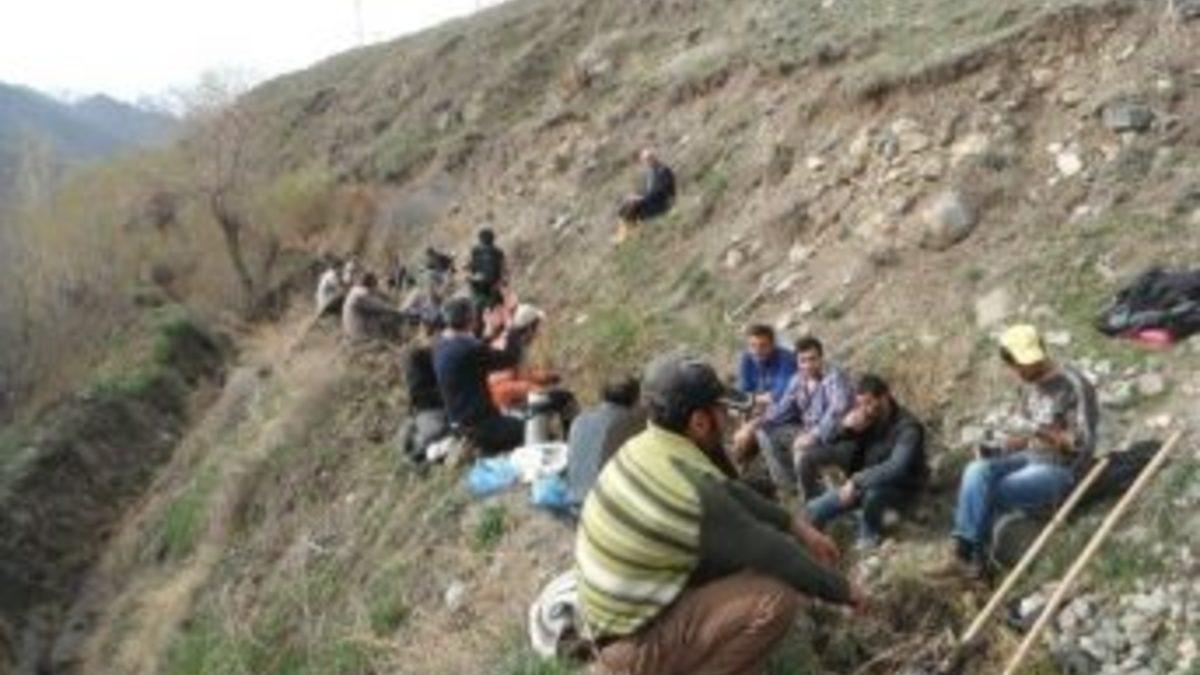 Vatandaşlar, kazma ve küreklerle kanal temizliğini sürdürürken bir yandan da sıcak havanın verdiği keyifle kendi aralarında türkü söyleyip eğleniyorlar.