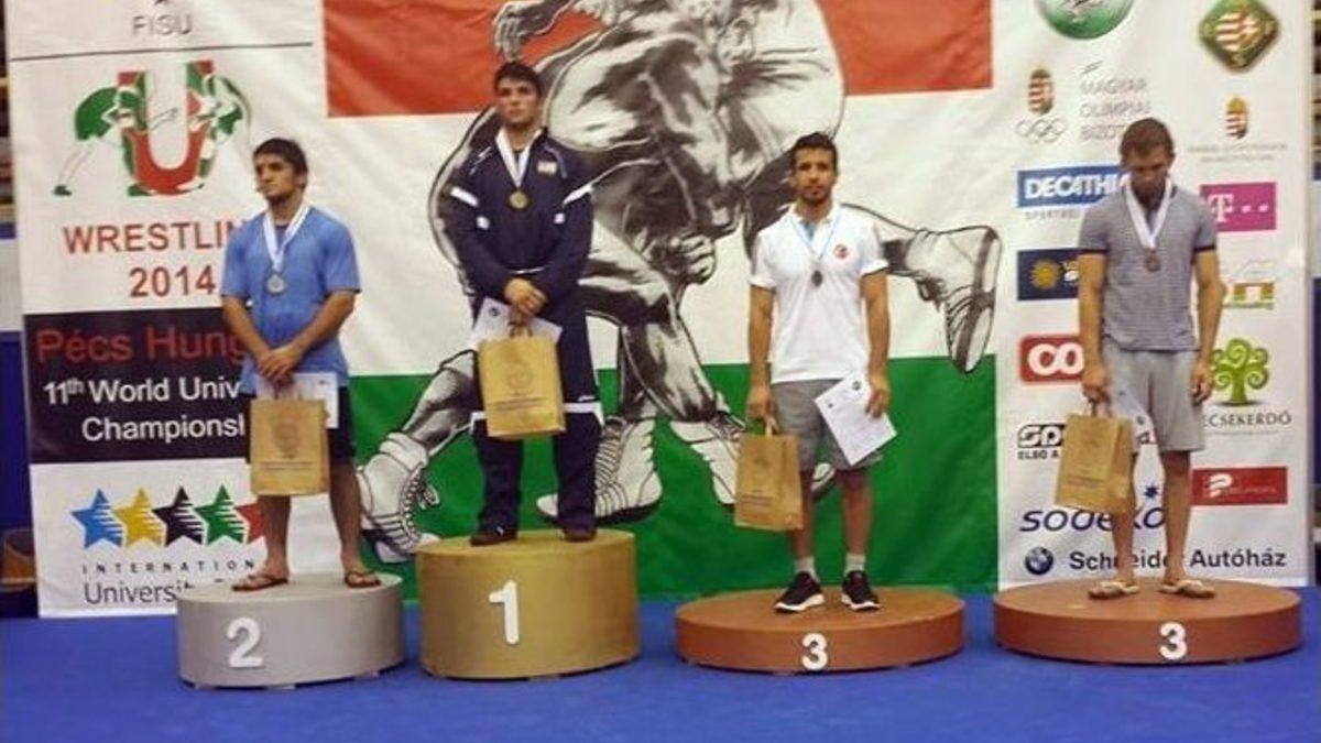 Kahramanmaraş Büyükşehir Belediyespor Güreş Takımı sporcularından Musa Gürbüz, Üniversiteler Dünya Güreş Şampiyonası’nda bronz madalya alarak dünya 3. oldu.Macaristan’ın başkenti Budapeşte’de düzenlenen Üniversiteler Dünya Güreş Şampiyonası’nda 74 kiloda mücadele eden Musa Gürbüz, bronz madalya kazanarak üçüncü oldu.Üniversiteler Dünya Güreş Şampiyonasının bugün devam edecek müsabakalarında ise yine Kahramanmaraş Büyükşehir Belediyespor Güreş Takımı sporcularından 57 kiloda Ziya Daylak ülkemizi temsil edecek.Aynı müsabakalarda Kahramanmaraşlı güreşçi Selahattin Kılıçsallayan kendi kategorisinde dünya birincisi olarak altın madalya kazandı.
