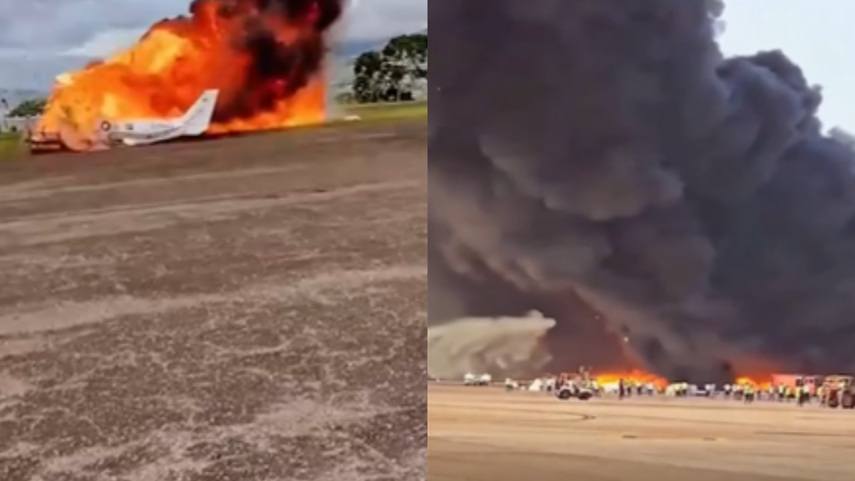 Olay anına ait şok edici görüntülerde, uçağın kalkış öncesinde yana yatıp dengesini kaybettiği ve kısa süre sonra patlayarak alev topuna döndüğü görülüyor. İlk incelemelere göre pilotun, lastiğin patlaması sonucu uçağın kontrolünü kaybettiği bildirildi.
