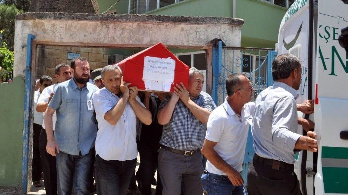 Gaziantep’te bir hafta önce kalp krizi geçirerek hastanede tedavi altına alınan polis memuru Hüseyin Apaydın hayatını kaybetti.Gaziantep İl Emniyet Müdürlüğünde görev yapan Hüseyin Apaydın (43) bir hafta önce görevden eve geldiğinde kalp krizi geçirmiş Gaziantep Dr. Ersin Devlet Hastanesinde yoğun bakım servisinde tedavi altına alınmıştı. Evli 3 çocuk babası Apaydın, yapılan müdahalelere rağmen önceki gece hayatını kaybetti. Apaydın’ın, cenazesi memleketi İslahiye ilçesi Kozdere Mahallesindeki babaevine getirildi. Apaydın, Kozdere Camii’nde öğle namazını müteakip kılınan cenaze namazının ardından mahalledeki mezarlığa defnedildi.Apaydın’ın cenaze törenine yakınlarının yanı sıra, Gaziantep İl Emniyet Müdür Yardımcısı Güray Acar, Şube Müdürü Tayfun Güngör, İslahiye İlçe Emniyet Müdürü Bedrettin Sarıtaş, mesai arkadaşları ve vatandaşlar katıldı.Cenaze töreninde vefat eden polis memurunun eşi ve çocuklarını yakınları teselli etti. Fenalık geçiren yakınlarına sağlık ekipleri müdahale etti.