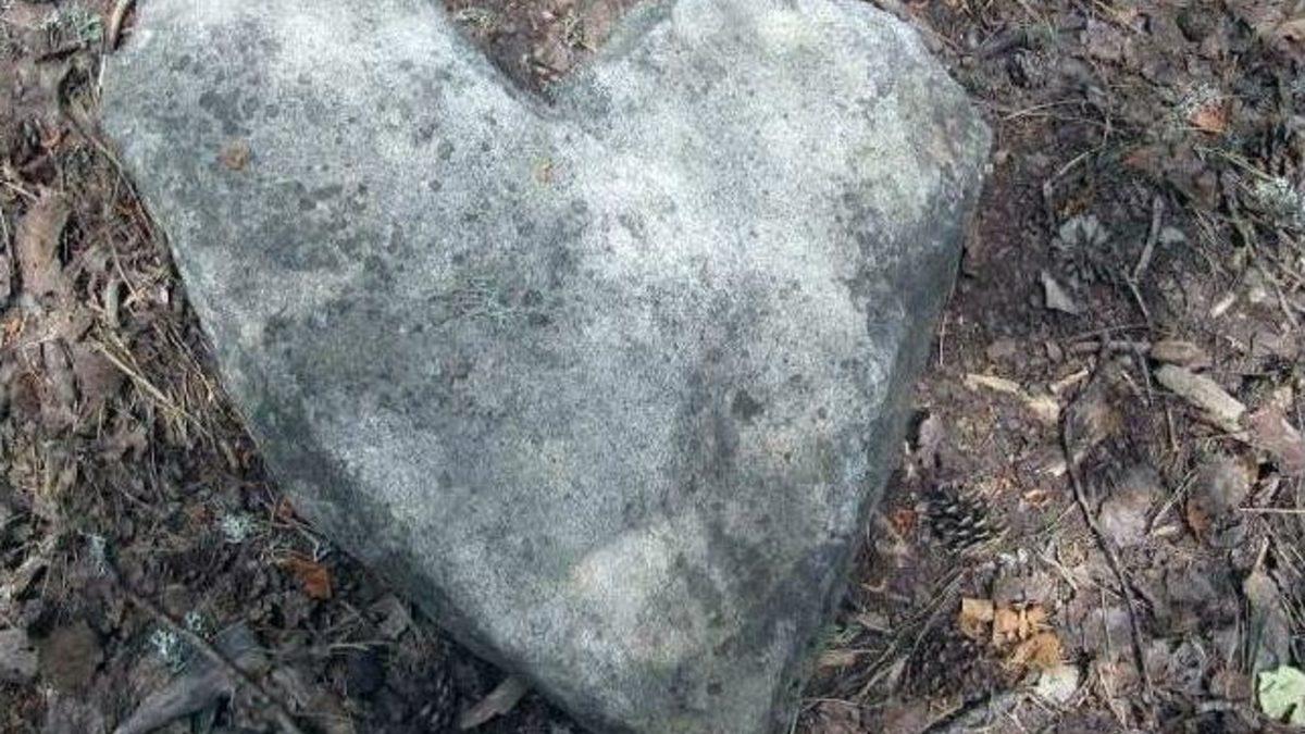 Bursa'da bir ormandaki kalbe benzeyen taşın görüntüsü görenlerin dikkatini çekiyor.