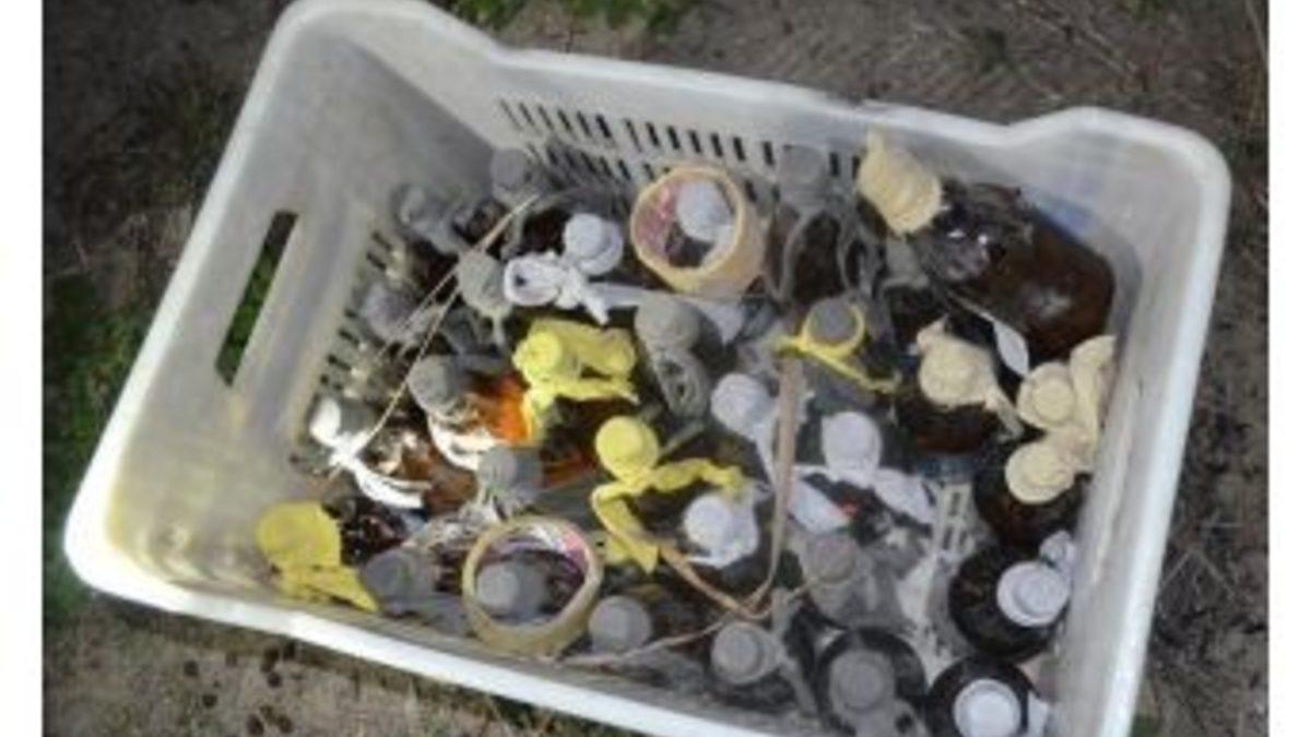 MERSİN (AA) - Tarsus ilçesinde kamışlık alandaki kasada, terör örgütü tarafından eylemde kullanılmak üzere hazırlandığı öne sürülen 31 molotofkokteyli ile toz maskesi,