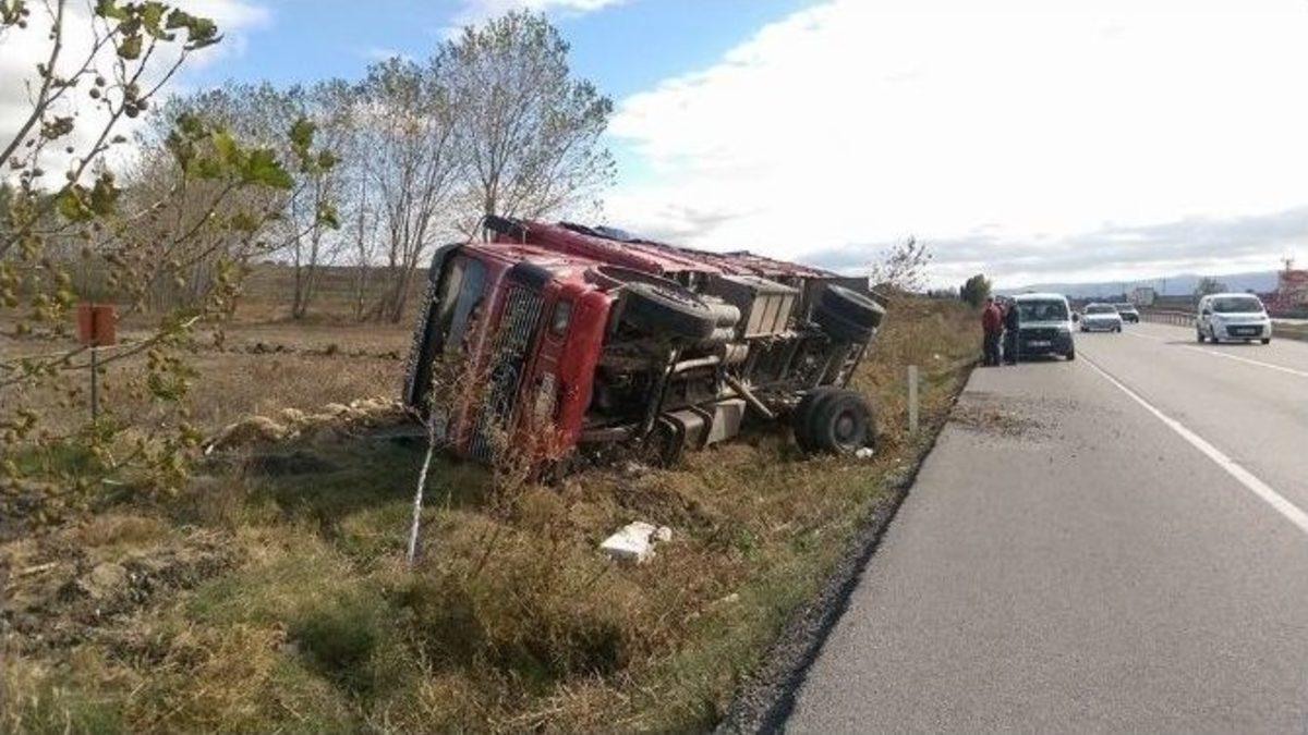 Bursa’da dingilinin kırılması üzerine Bursa-İzmir yolunda yan yatan kamyondaki 100’e yakın koyun telef oldu.Kaza, saat 12.00 sıralarında Bursa-İzmir yolunun Karacabey mevkiinde meydana geldi. Edinilen bilgiye göre, sürücüsünün ismi öğrenilemeyen 55 K 8527 plakalı koyun yüklü kamyonun seyir halindeyken dingili koptu. Dingilin kırılmasıyla kamyon yol kenarındaki tarlaya yan yattı. Kamyonun kasasından etrafa saçılan 100’e yakın koyun ise telef oldu. Olay yerine gelen jandarma ekipleri soruşturma başlattı.