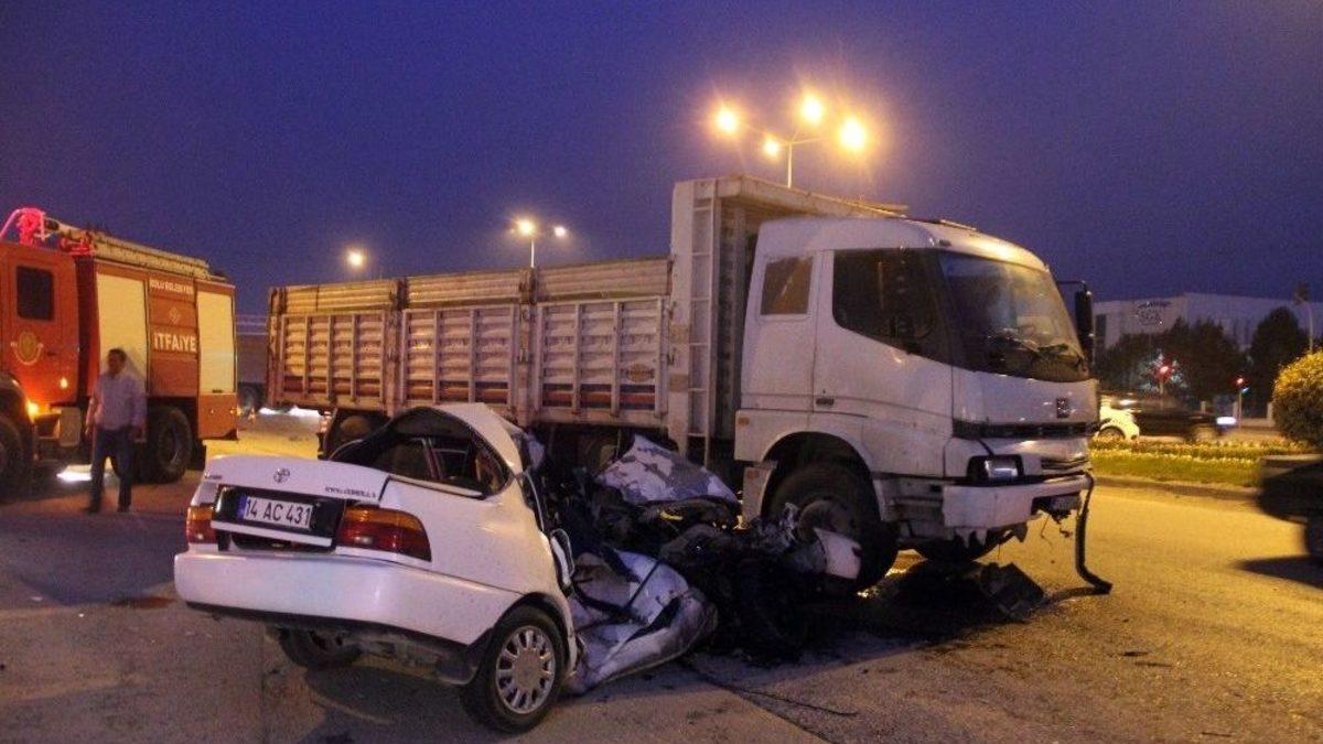 Bolu’da D-100 karayolunda kamyon ile otomobilin çarpıştığı trafik kazasında 1 kişi hayatını kaybetti.Edinilen bilgiye göre, D-100 karayolunda, İstanbul istikametine giden Sercan A. idaresindeki 14 BP 166 plakalı kamyon, yine aynı yola bağlanmak için kavşaktan dönen Hüseyin Kurnaz idaresindeki 14 AC 431 plakalı otomobile çarptı. Kamyon, Hüseyin Kurnaz idaresindeki otomobili yaklaşık elli metre sürükledikten sonra durabildi. Kazada otomobil kullanılamaz hale gelirken araçta bulunan sürücü çevredekilerin yardımıyla dışarı çıkarıldı. Olay yerine çağırılan 112 ekipleri otomobil sürücüsü Hüseyin Kurnaz’a yaklaşık 20 dakika boyunca kalp masajı yaptılar.Oğlu kaza yerinde sinir krizi geçirdiBabasının kaza yaptığını duyan Emre Kurnaz arkadaşlarıyla birlikte olay yerine geldi. Sağlık ekiplerinin babasına kalp masajı yaptıklarını gören Emre Kurnaz, "babam" diye bağırarak gözyaşlarına boğuldu. Kurnaz, arkadaşları tarafından güçlükle sakinleştirildi.Tüm müdahalelere rağmen kaza yerinde kalbi çalıştırılamayan Kurnaz ambulansla İzzet Baysal Devlet Hastanesi Köroğlu Ünitesi’ne kaldırıldı. 48 yaşındaki Hüseyin Kurnaz hastanede de tüm müdahalelere rağmen kurtarılamadı.Kazayla ilgili soruşturma başlatıldı.
