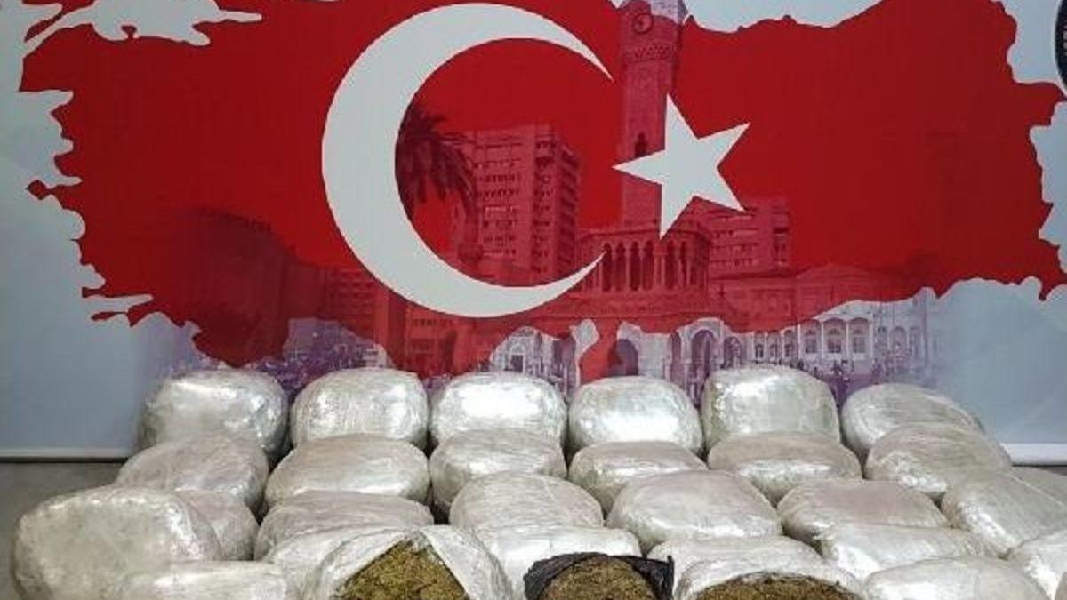 Diyarbakır plakalı bir kamyon ile İzmir'e yüklü miktarda uyuşturucu madde getirileceği bilgisini alan İzmir Narkotik Suçlarla Mücadele Şube Müdürlüğü ekipleri, kentin giriş noktalarında önlem aldı. Kamyonun Menemen ilçesi yönünden İzmir'e girdiğinin tespit edilmesi üzerine, araç bir süre takip edilip, Buca'daki sebze ve meyve haline geldiğinde durduruldu. Kamyonun şoförü 44 yaşındaki U.Ç. gözaltına alınırken, araçta yapılan aramada boş sebze kasaları arasına gizlenmiş, satışa hazır 30 ayrı paket içerisinde, 120 kilo esrar ele geçirildi.