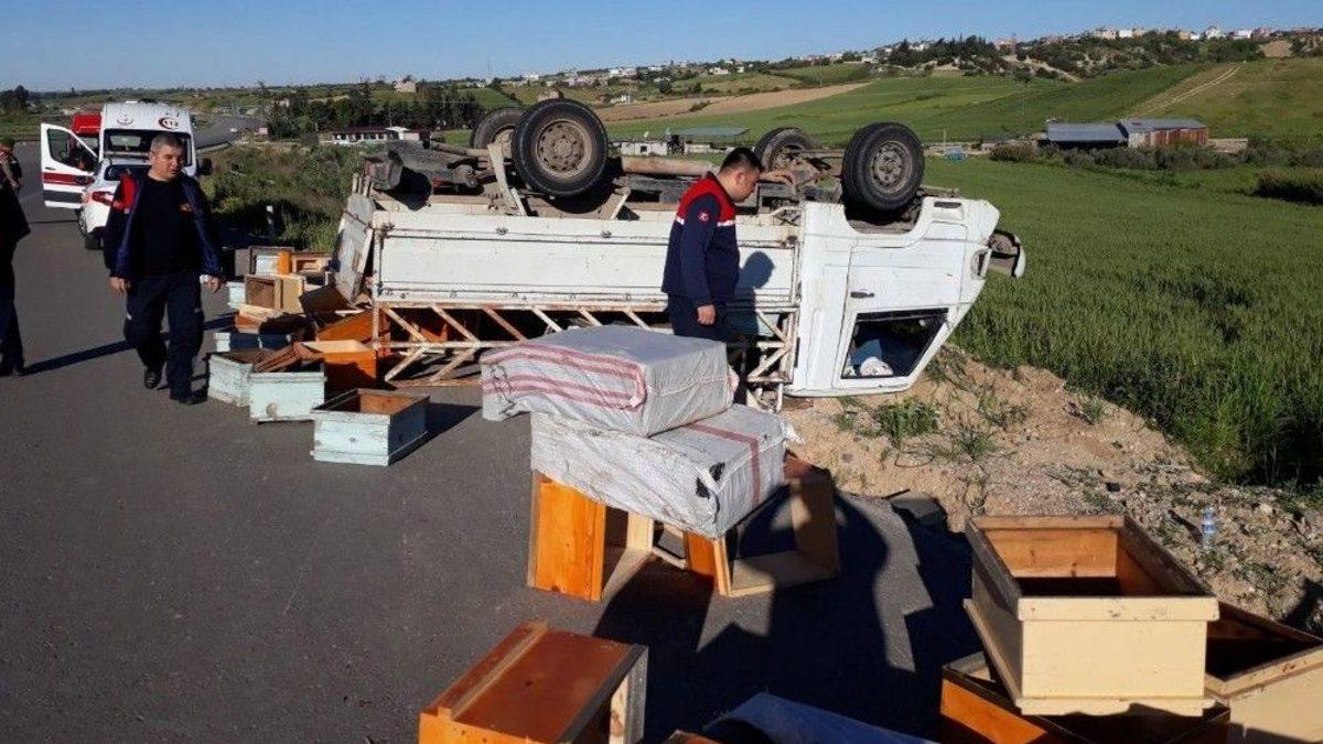 Adana’da boş arı kovanı taşıyan açık kasa kamyonet takla atarak yolun kenarına devrildi. Kamyonetin kasasındaki arı kovanları yola saçılırken, sürücü kazadan hafif yaralı olarak kurtuldu.Alınan bilgiye göre, kaza, bugün sabah saatlerinde Sarıçam ilçesine bağlı Kılıçlı köyünde meydana geldi. Mustafa Erdoğan yönetimindeki 33 NV 025 plakalı kamyonet, direksiyon hakimiyetinin kaybolması sonucu Andız Burnu mevkisinde takla atarak yolun kenarına devrildi. Araçta bulunan boş arı kovanları çevreye saçıldı. Kaza yerine gelen Cankur ekipleri sürücü Erdoğan’ı kamyonetten çıkararak 112 ekiplerine teslim etti.